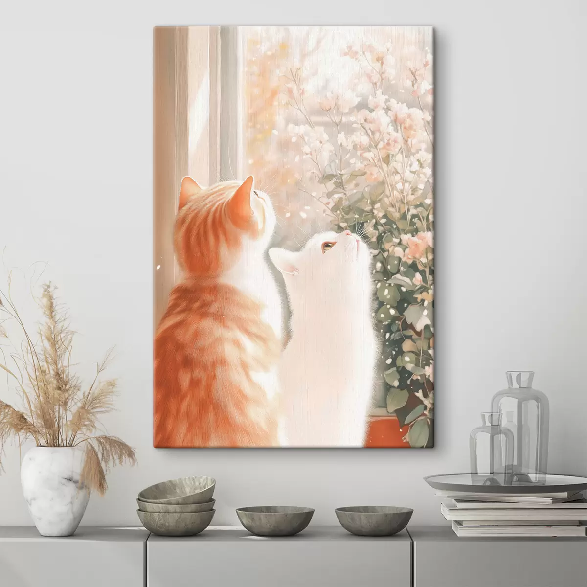 Tableau Illustration au crayon et à l'aquarelle représentant deux adorables chats assis ensemble s40670