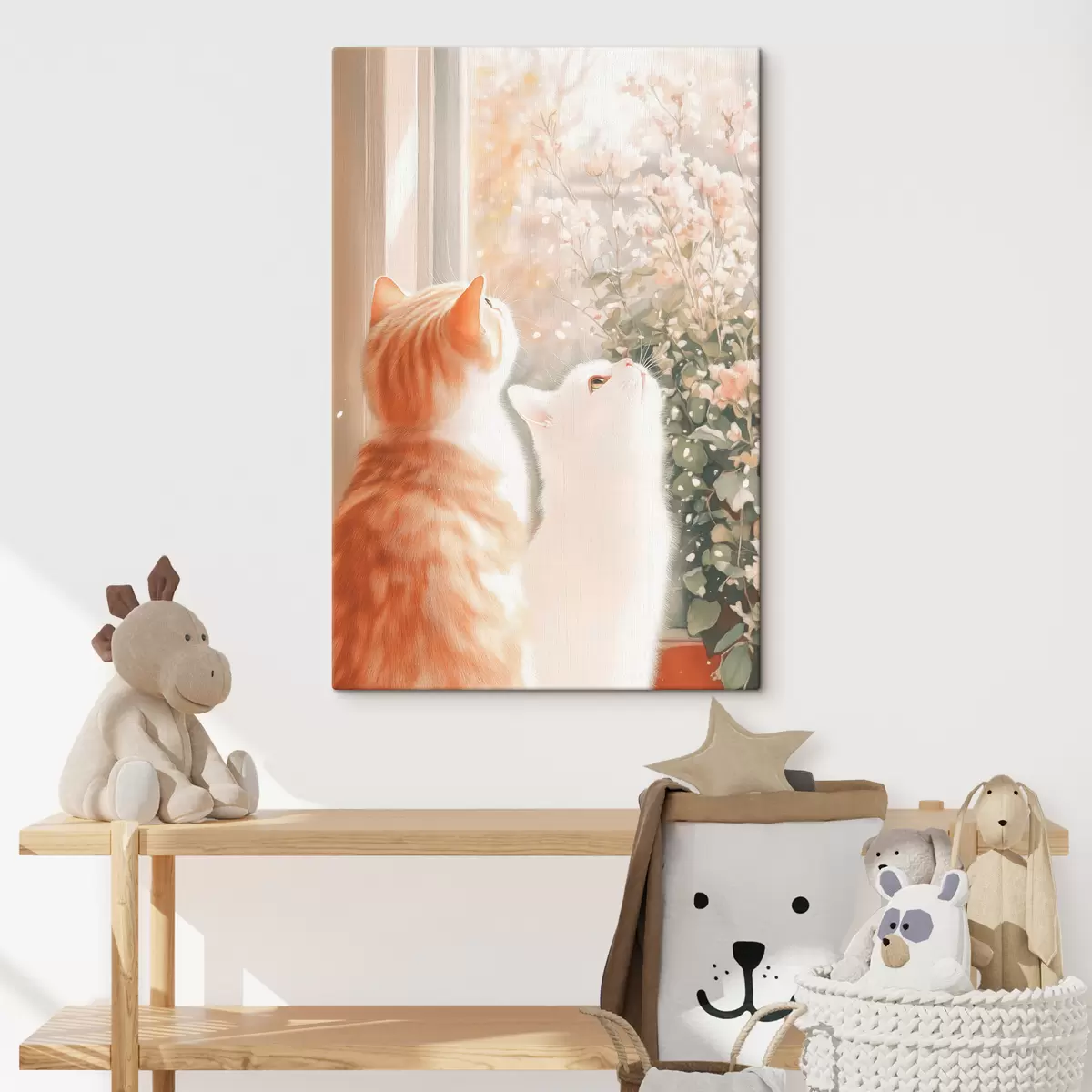 Tableau Illustration au crayon et à l'aquarelle représentant deux adorables chats assis ensemble Nr s40670