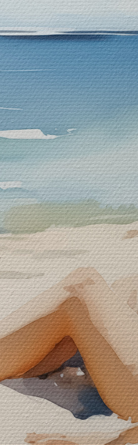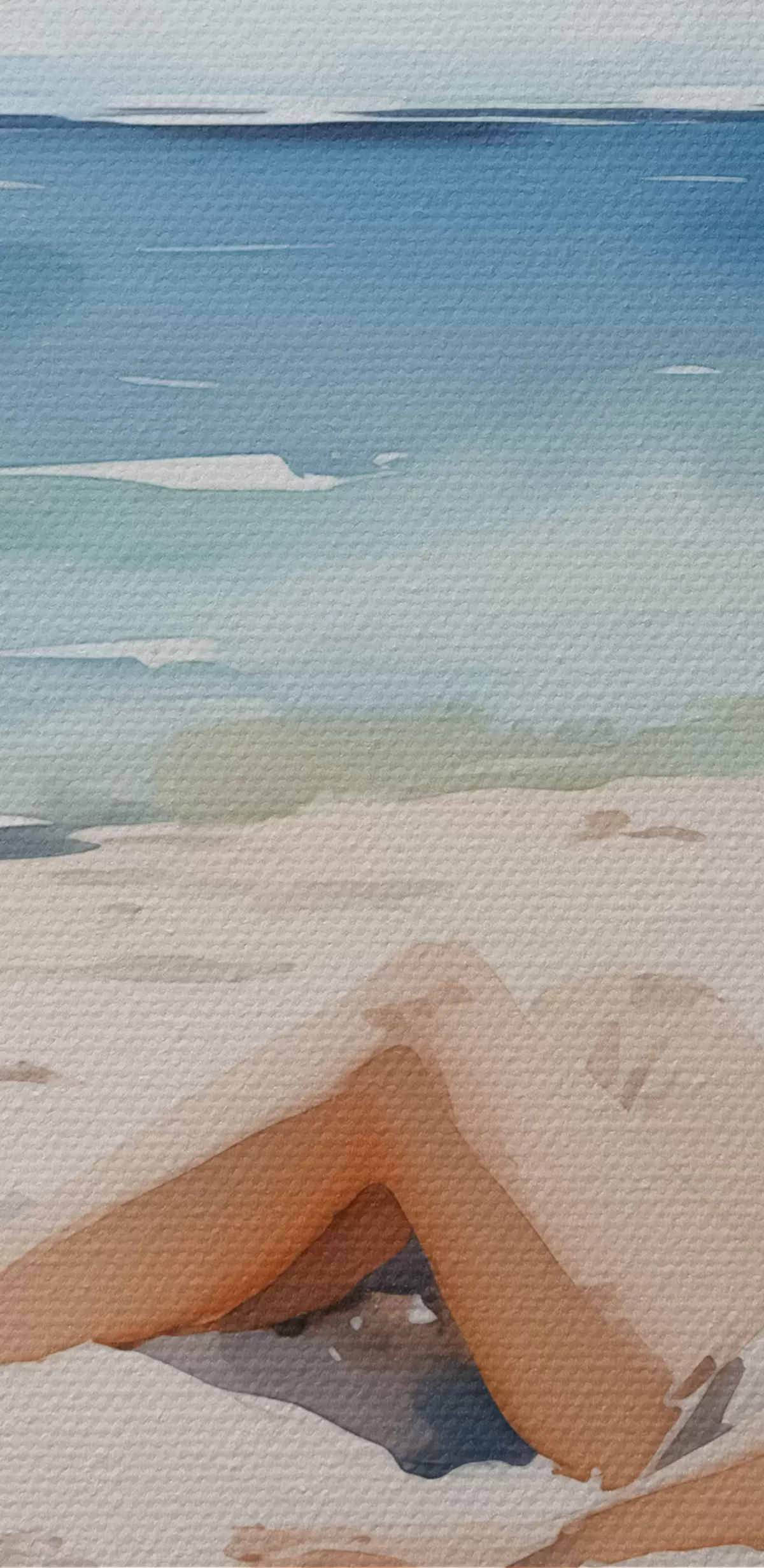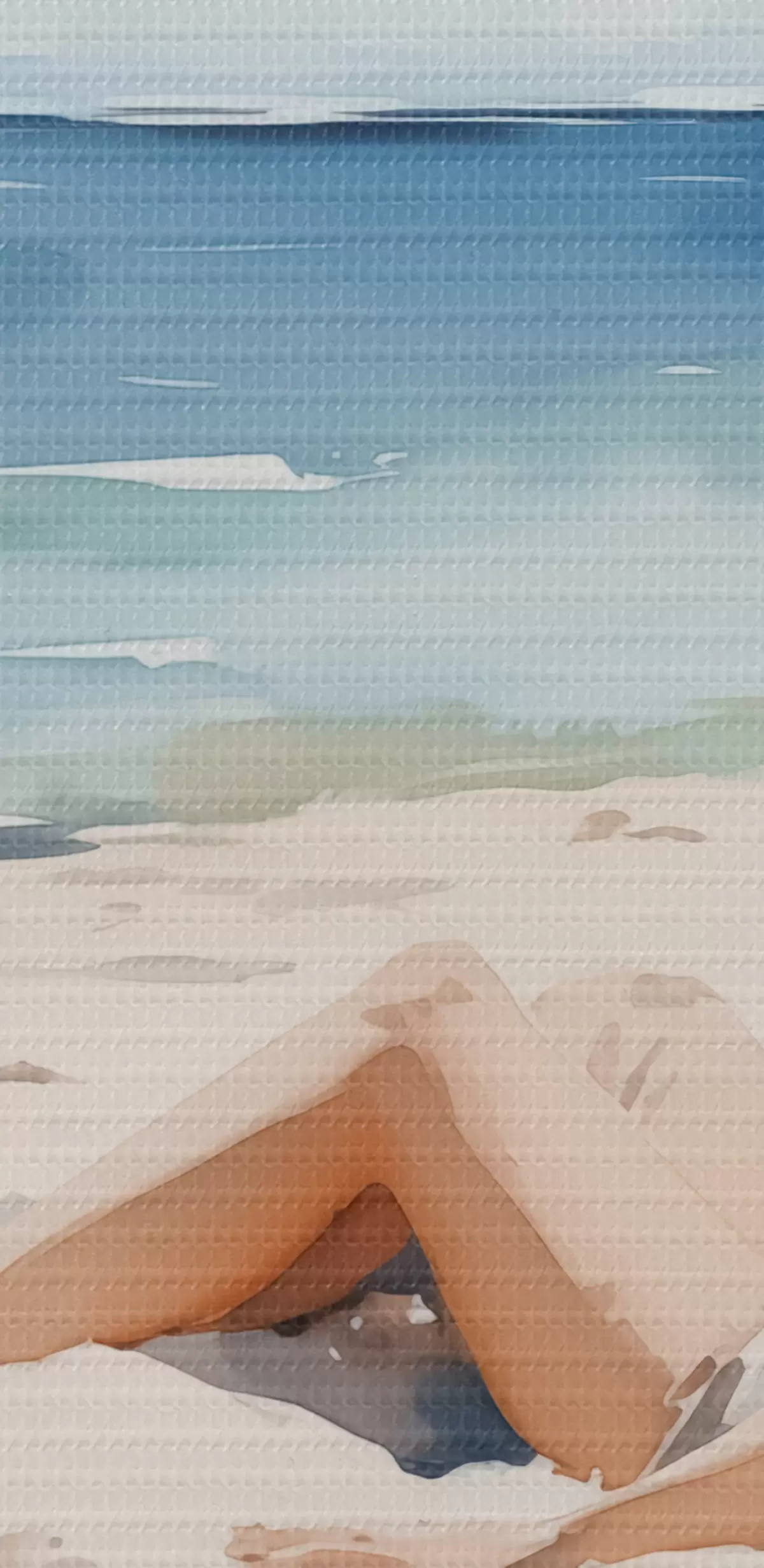 Tableau Fille se relaxant sur la plage au bord de la mer aquarelle Nr s40679