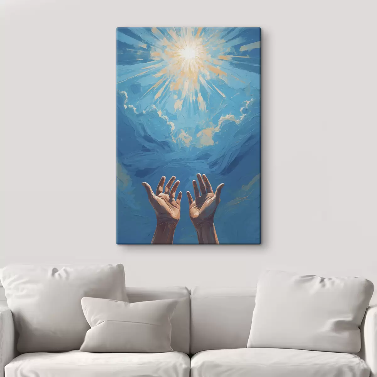 Tableau Mains sur fond de soleil s40692