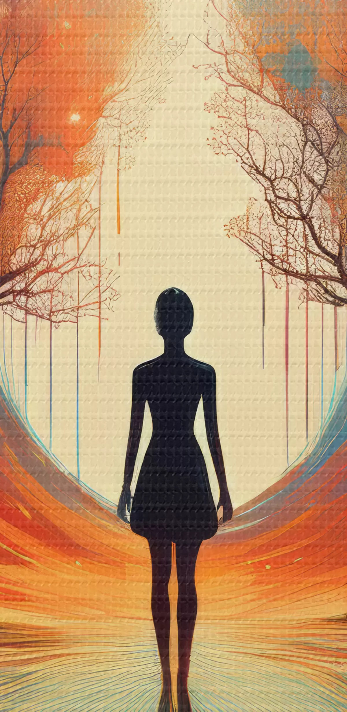 Tableau silhouette entre les arbres, connaissance de soi, réflexion sur soi Nr s40713