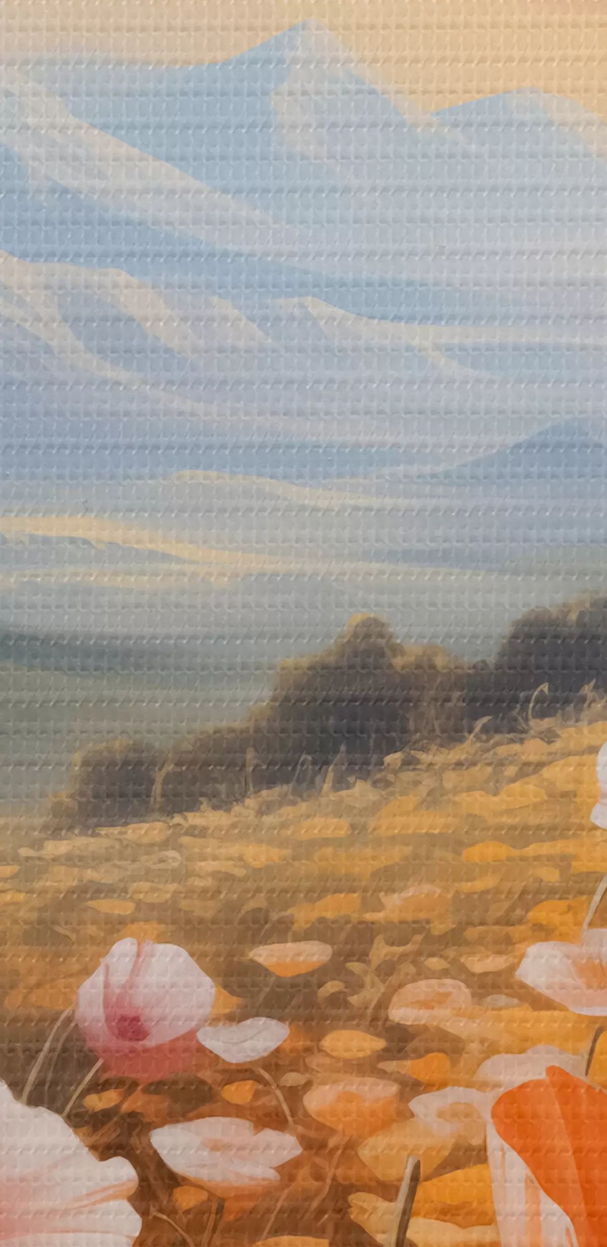 Tableau Champ de coquelicots à l'aube avec les montagnes en arrière-plan s40730