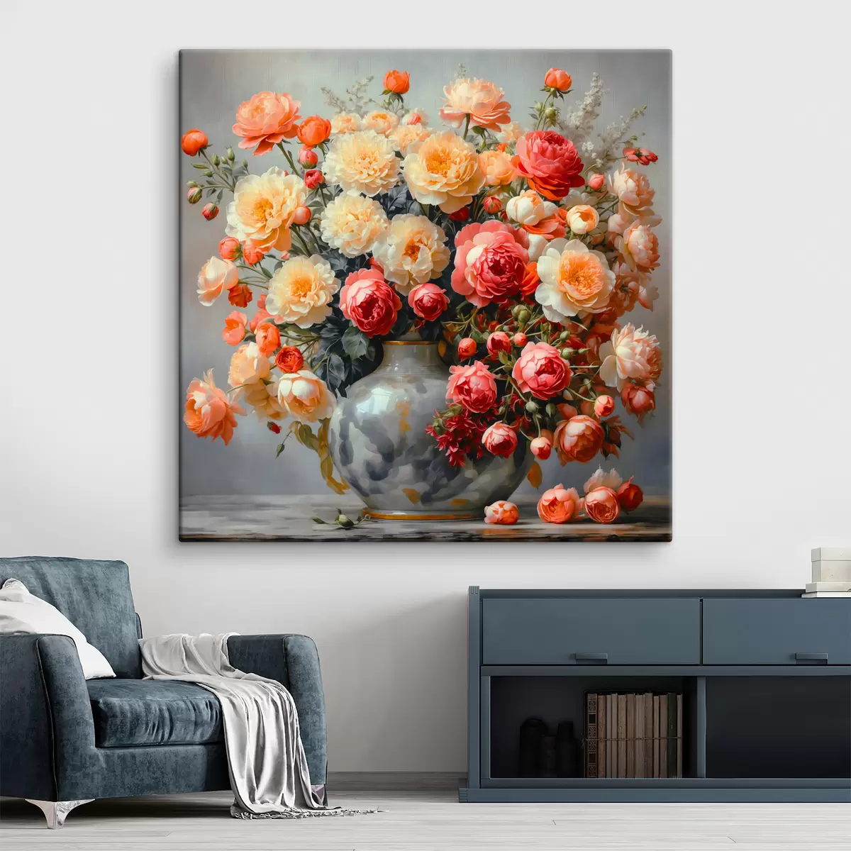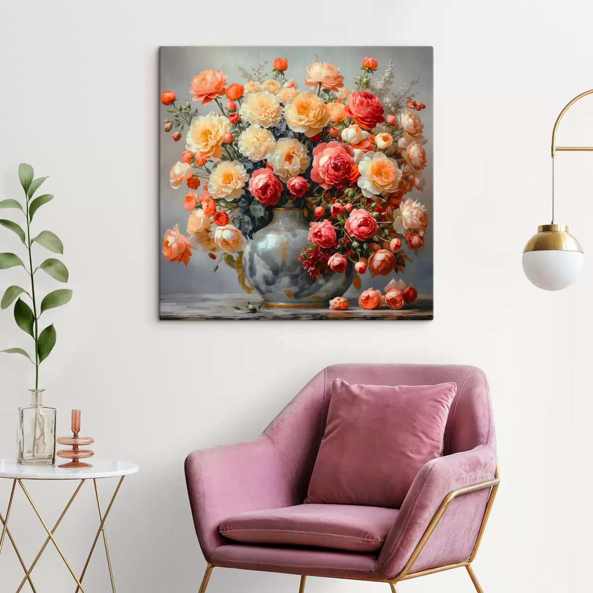Tableau Un bouquet de fleurs lumineuses dans un vase s40733