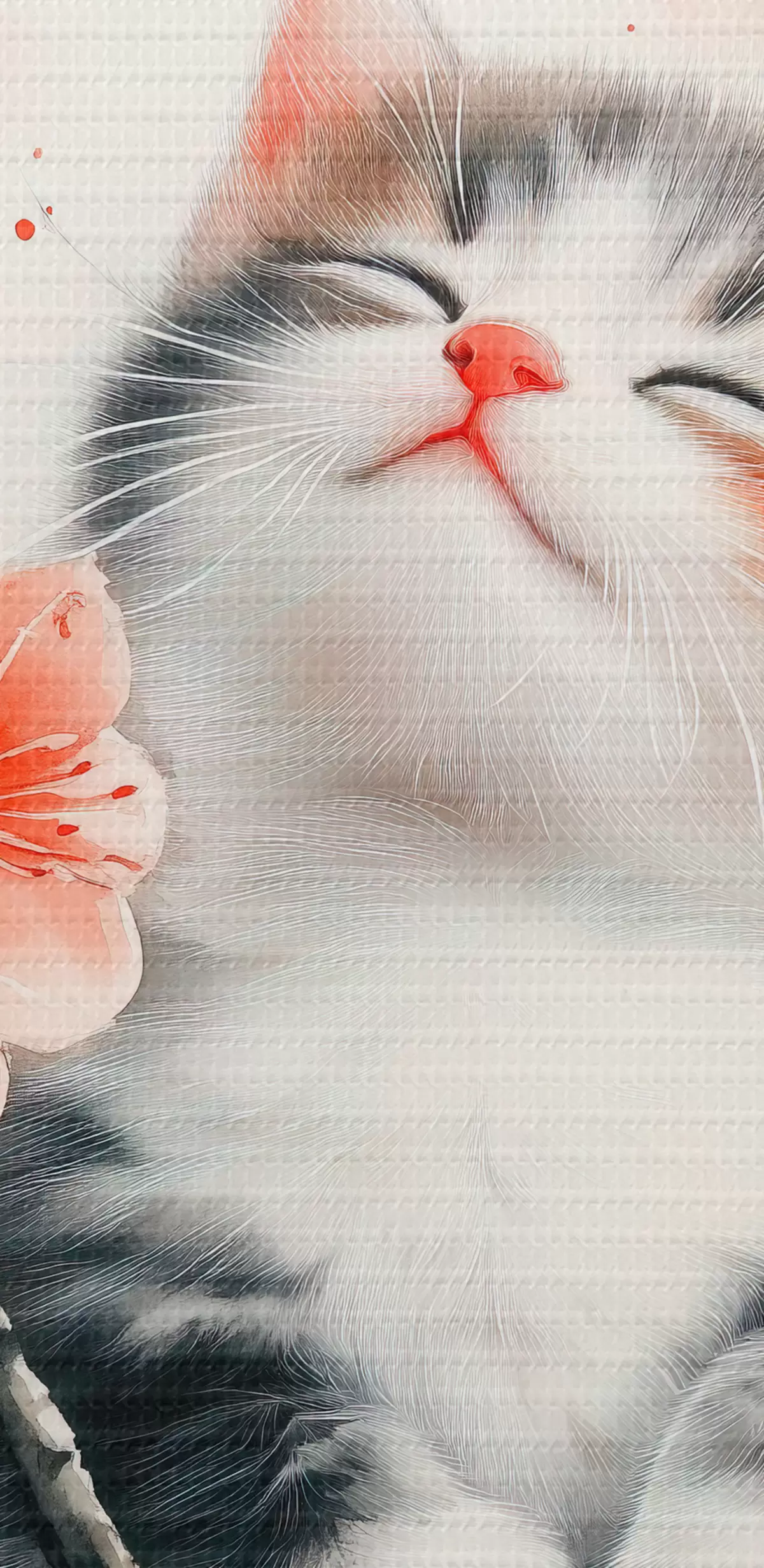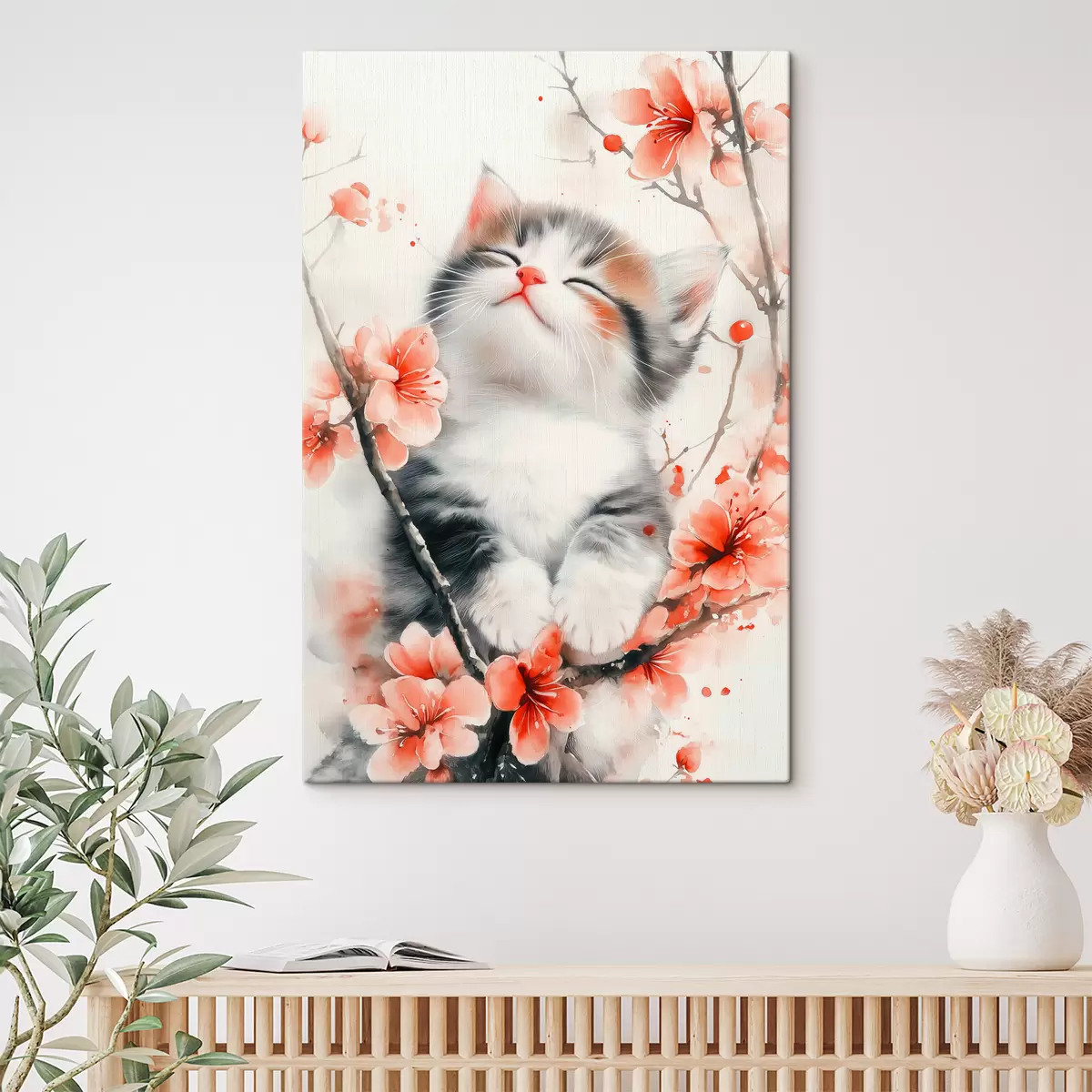 Tableau Chaton mignon sur une branche avec des fleurs Nr s40734