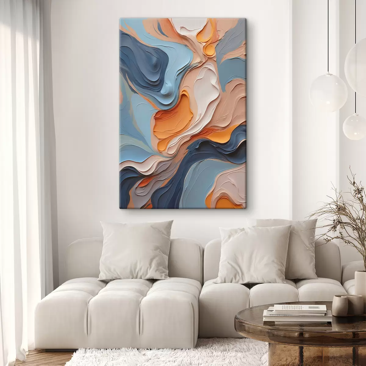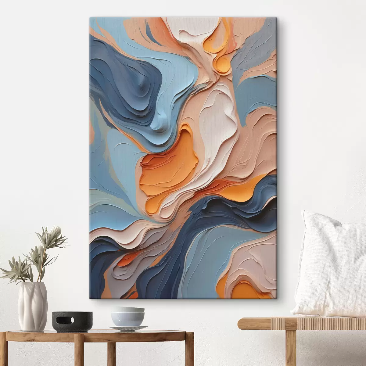 Tableau Abstraction dans les tons bleu et orange avec texture d'imitation s40743