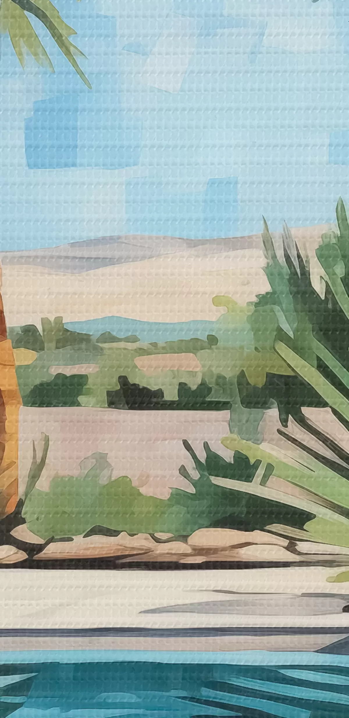 Tableau Palmiers près de l'hôtel avec une piscine près des rochers, couleur bleu, vert, rouge Nr s40748