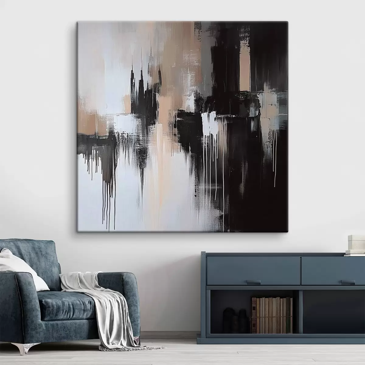 Tableau Abstraction dans les tons noirs et beiges s40794