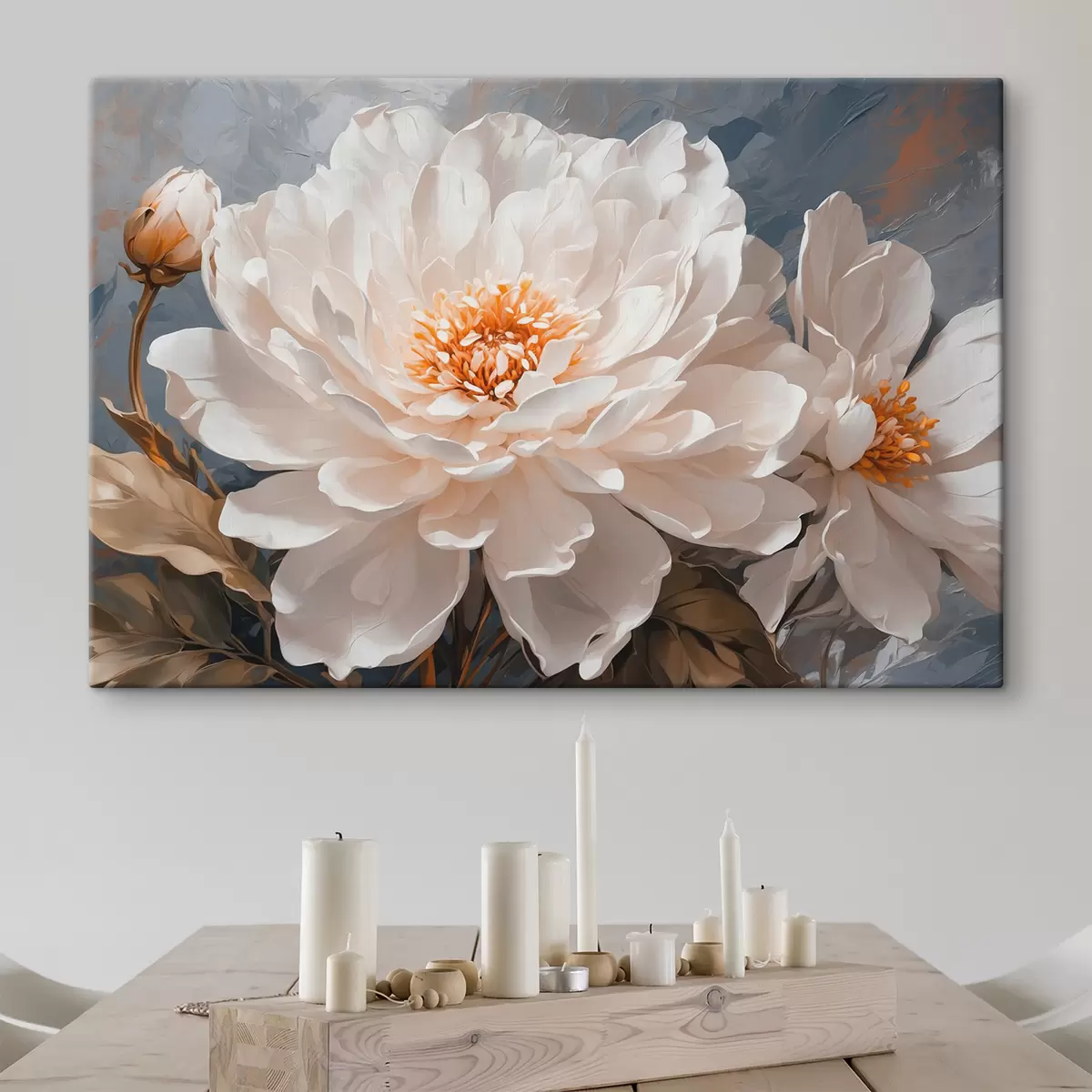 Tableau Fleurs blanches sur fond gris Nr s40868