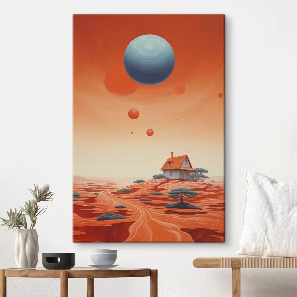 Tableau Désert avec maison, art futuriste, cosmique, planète s40944
