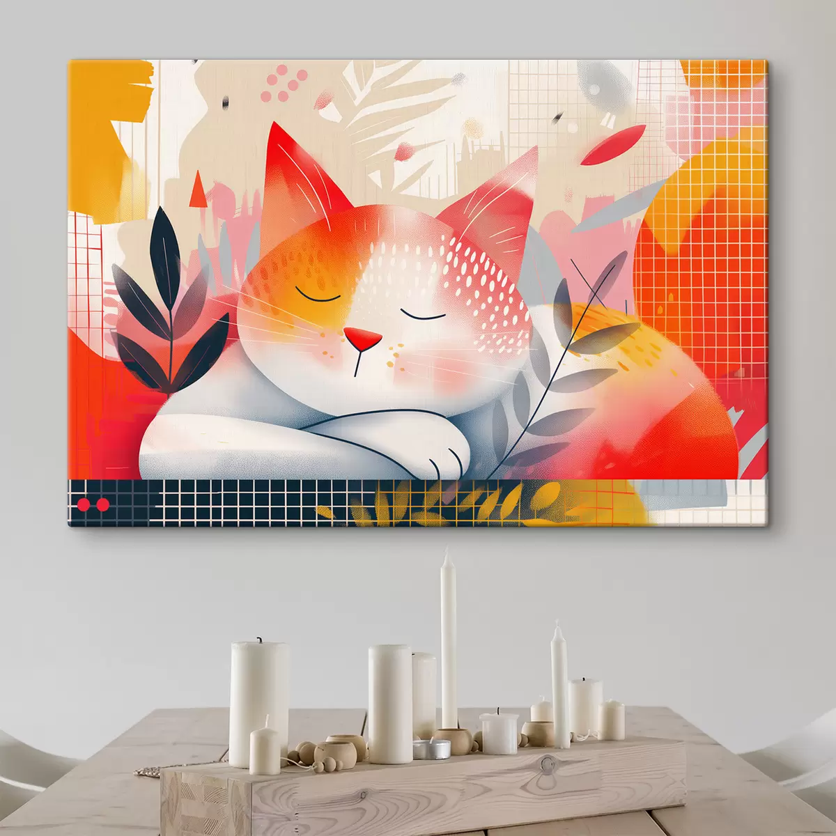 Tableau Un chat mignon dormant sur le sol parmi des fleurs colorées Nr s40981