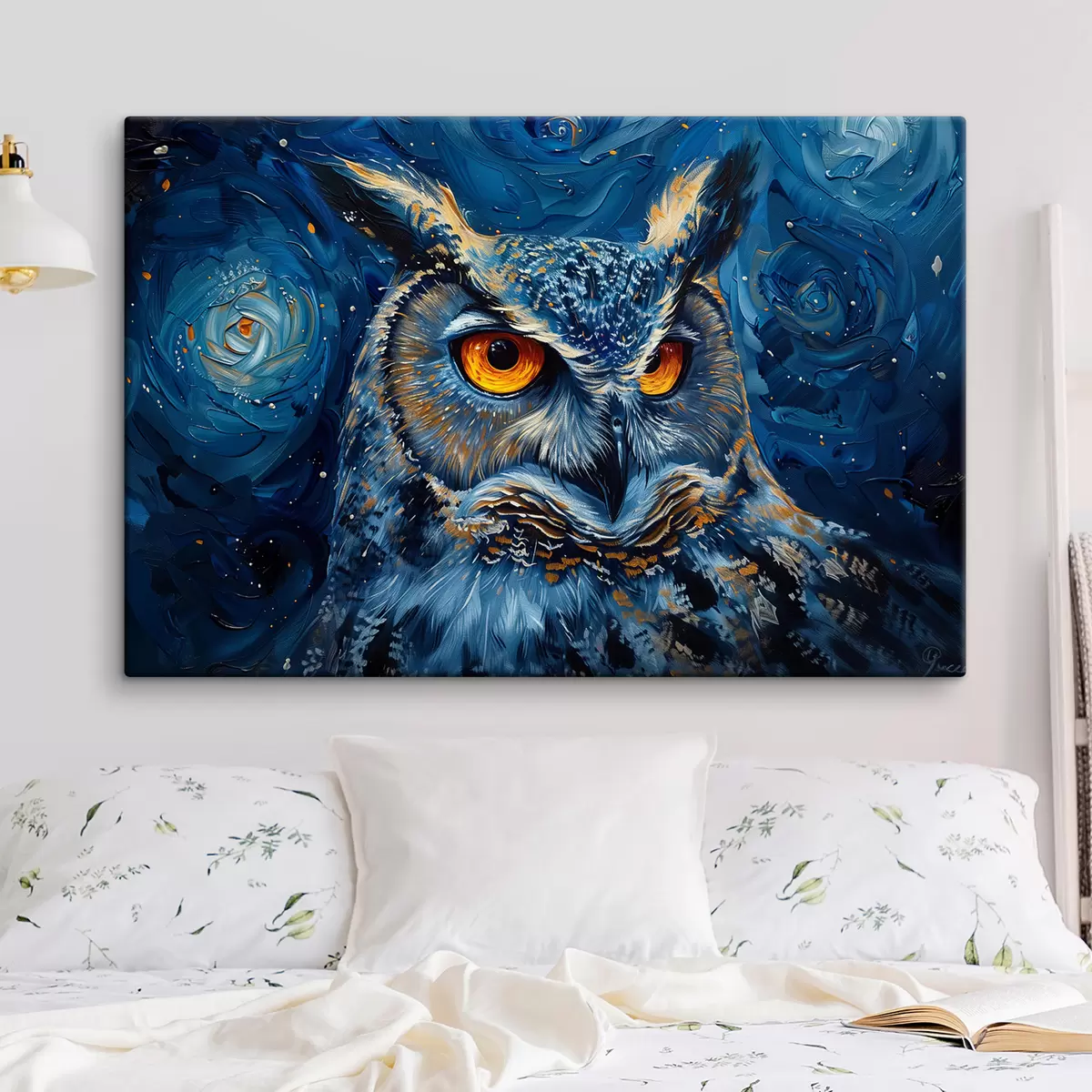 Tableau Le regard d'un hibou la nuit dans un ciel à la Van Gogh Nr s40982