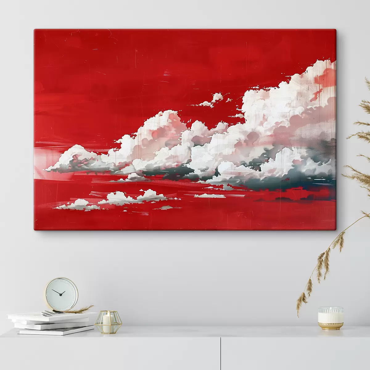 Tableau Nuages orageux sur fond rouge s40987