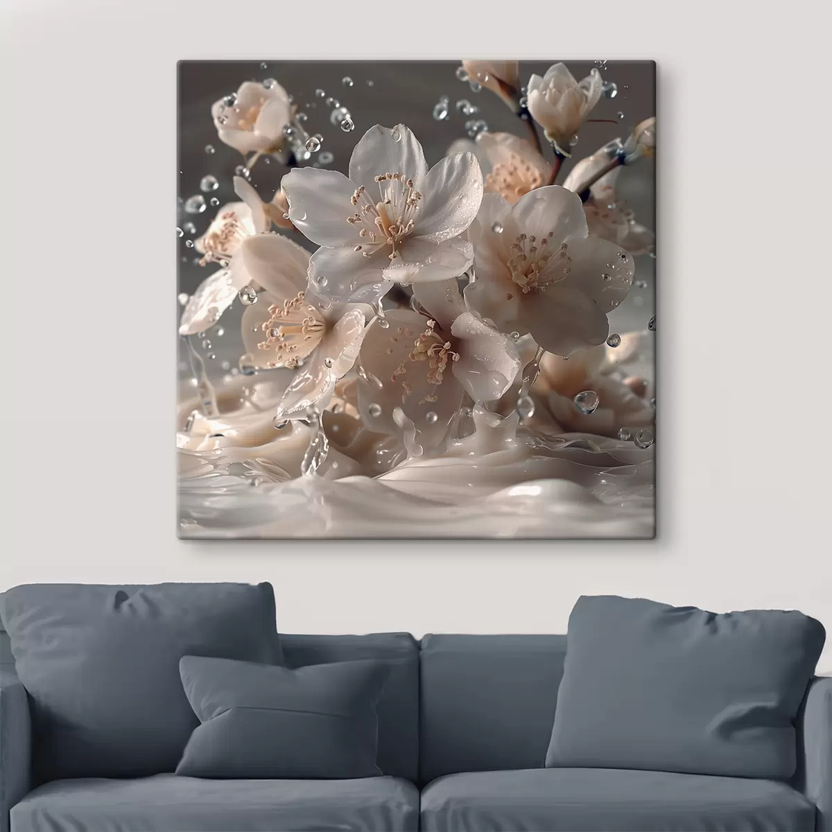 Tableau Fleurs de jasmin dans un tourbillon de gouttelettes s41003