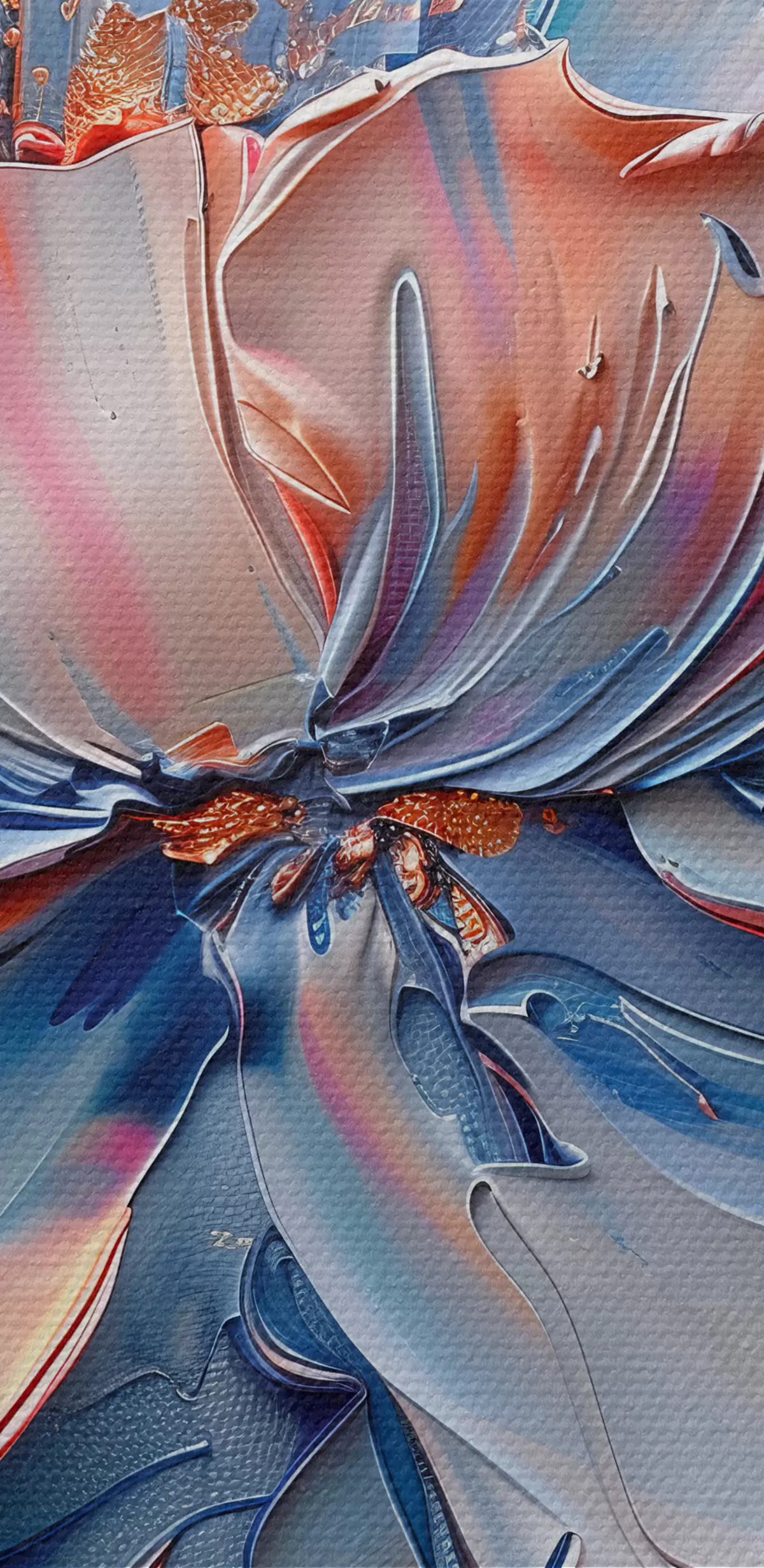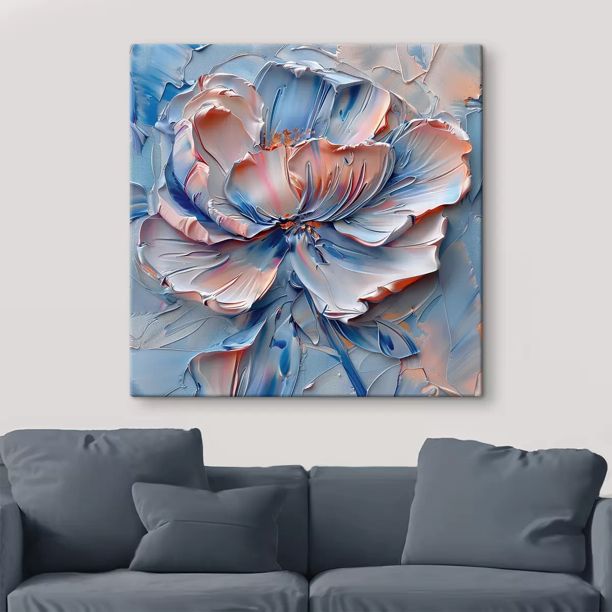 Tableau Grande fleur avec des coups de pinceau audacieux dans les couleurs bleu et pêche Nr s41004