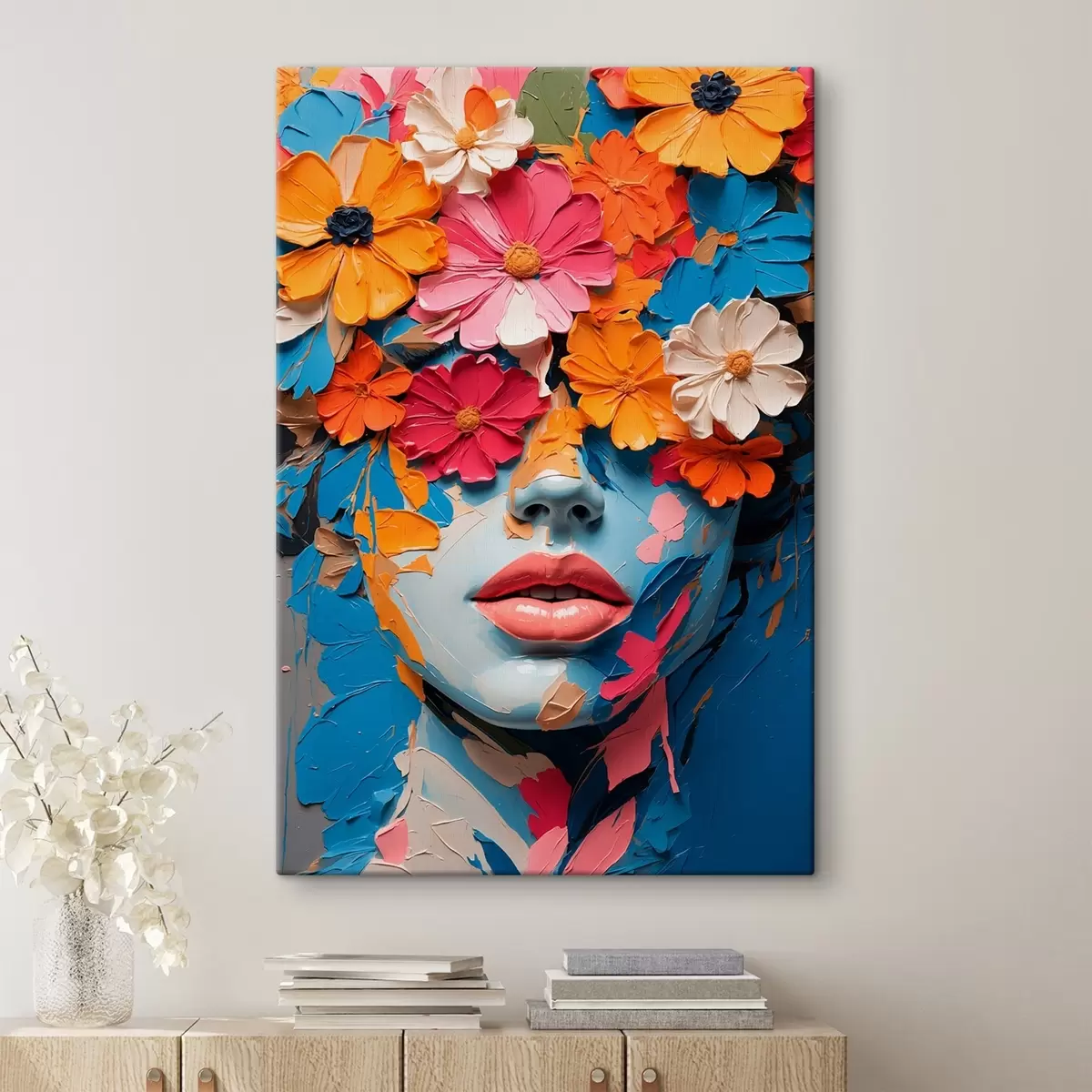 Tableau Visage d'une jeune fille couvert de fleurs dans de l'huile s41023
