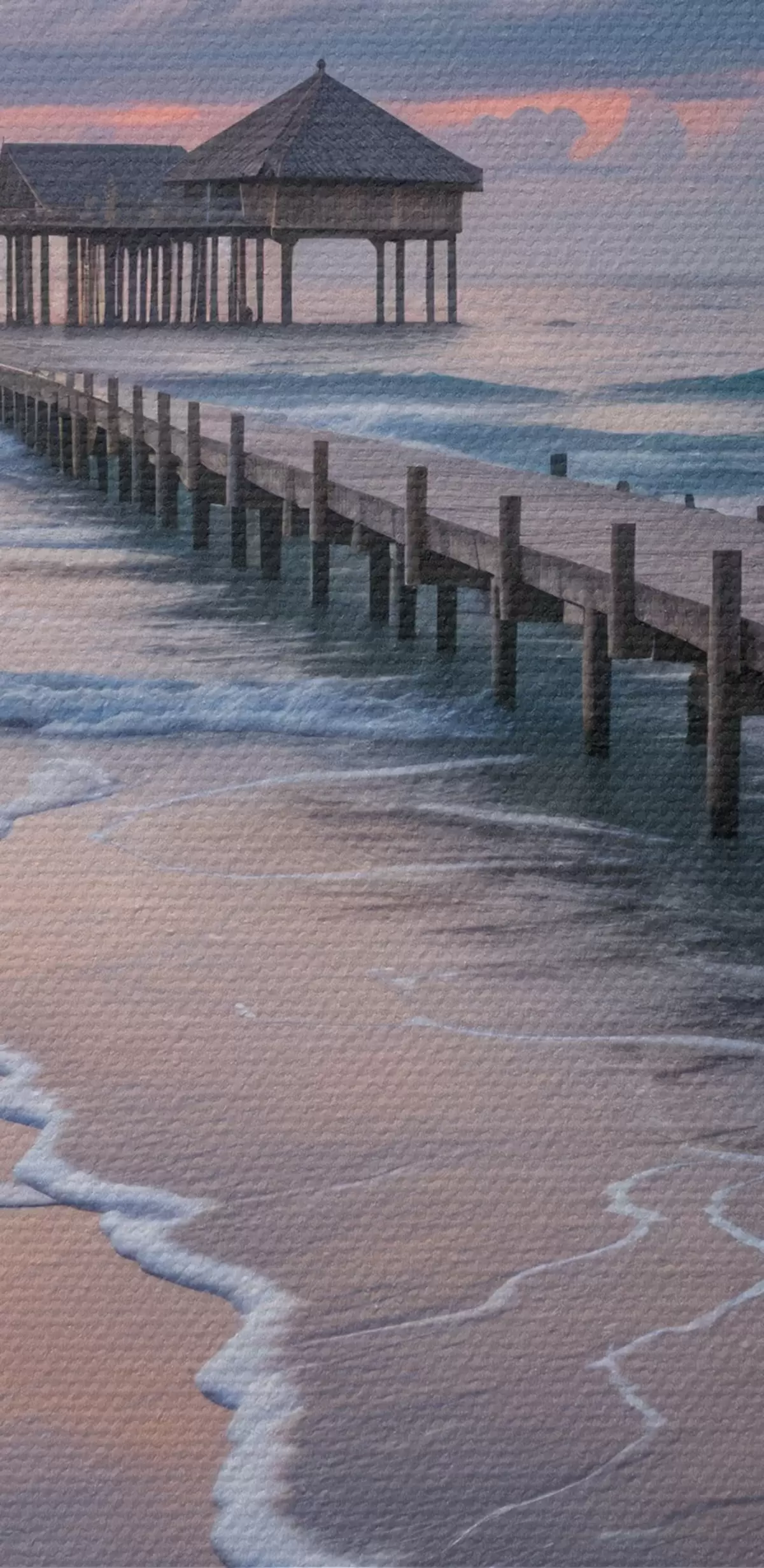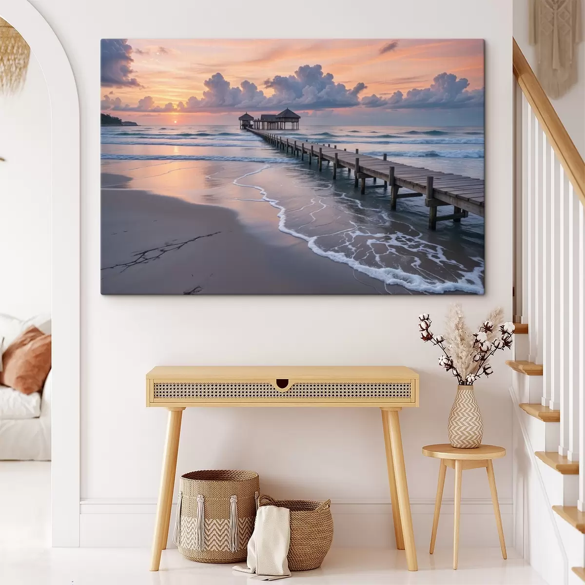 Tableau Une jetée en bois se prolongeant dans un océan calme au coucher du soleil avec des nuages colorés  s41091