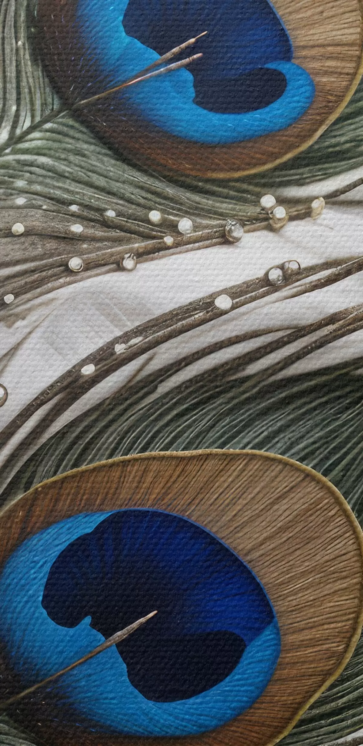 Tableau Plumes de paon vibrantes avec des motifs complexes et des motifs bleus frappants Nr s41103