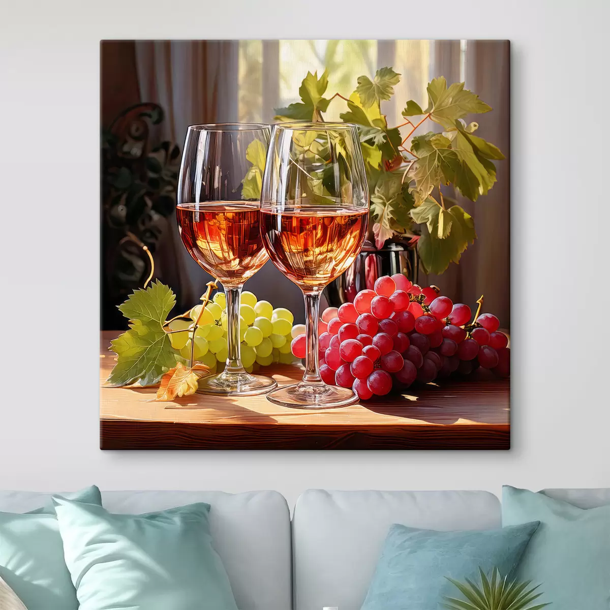 Tableau verres de vin et raisins, nature morte s41105