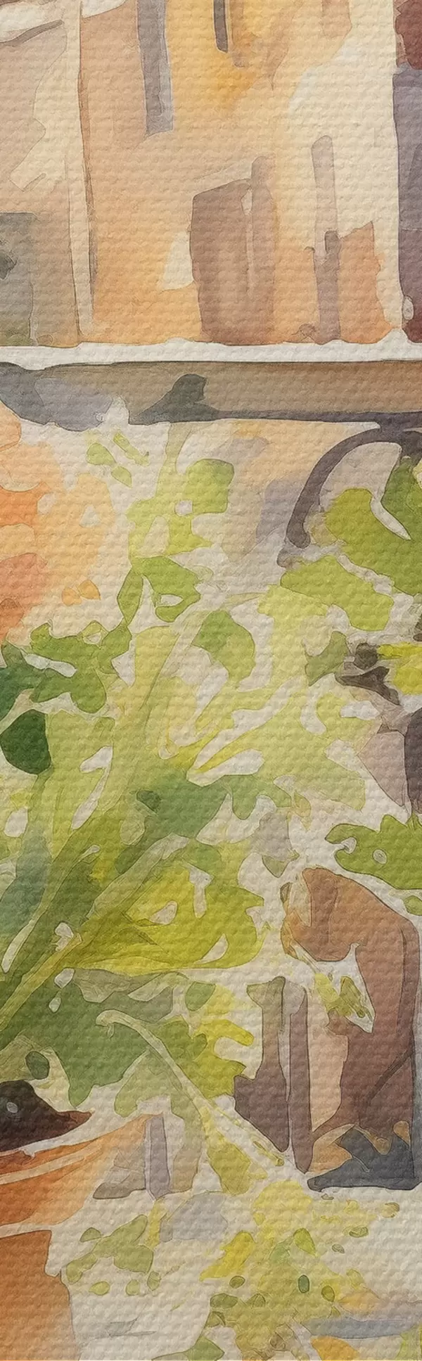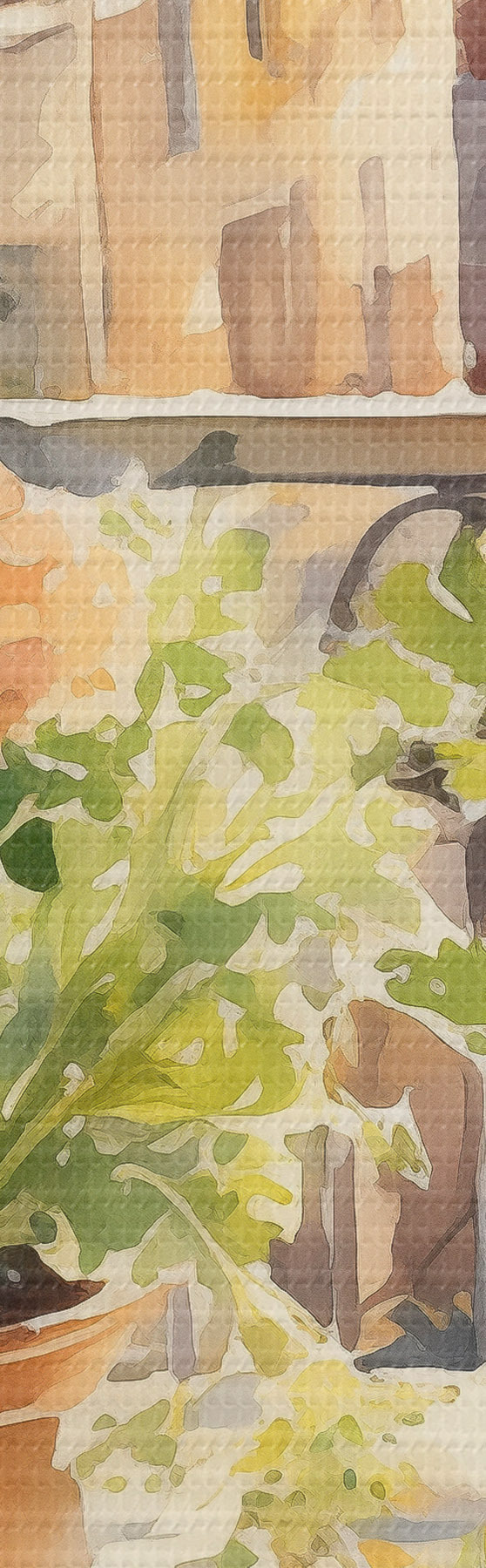 Tableau Dîner aquarelle, vue de la ville, fleurs, nature, salade verte Nr s41166
