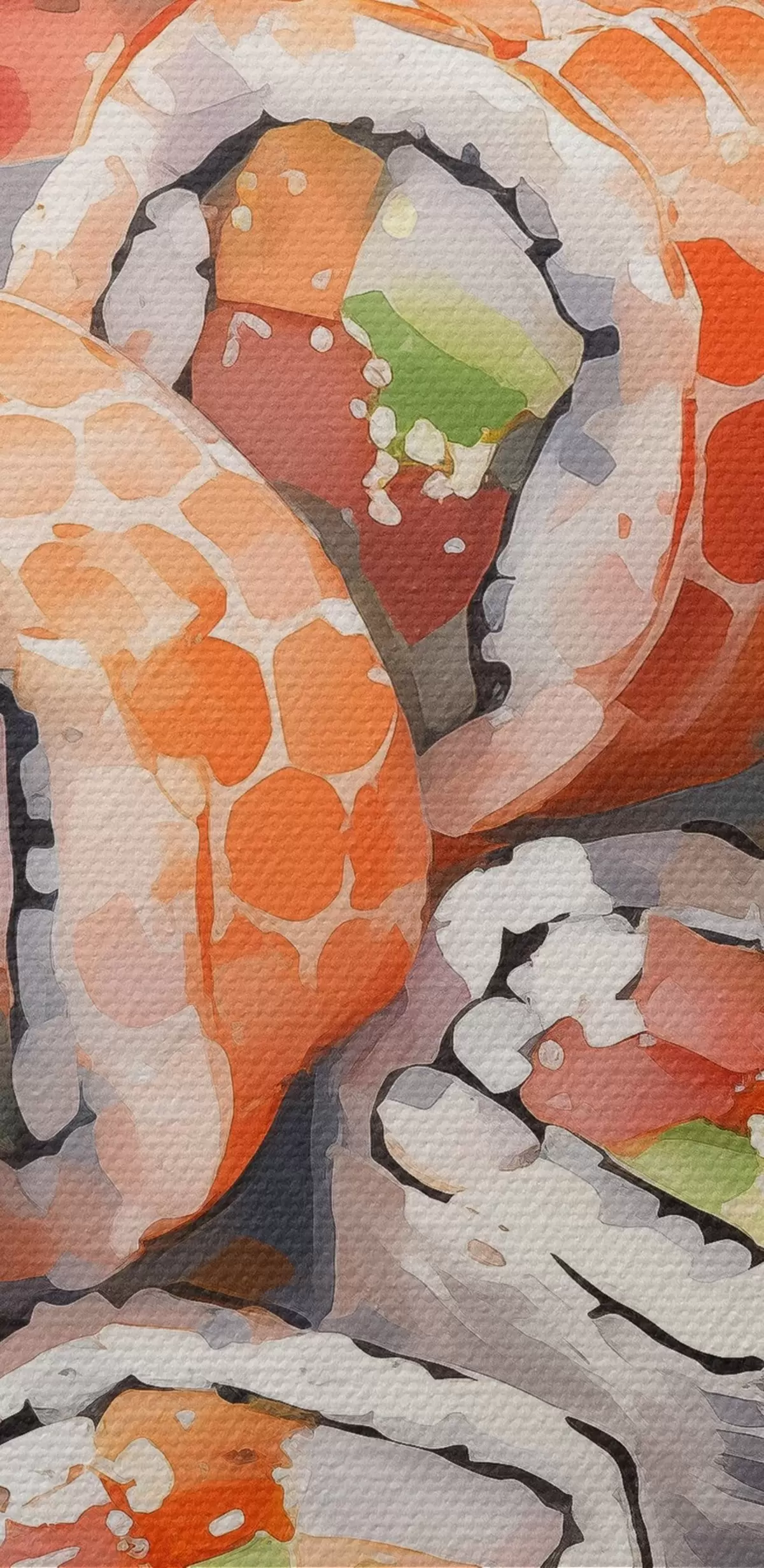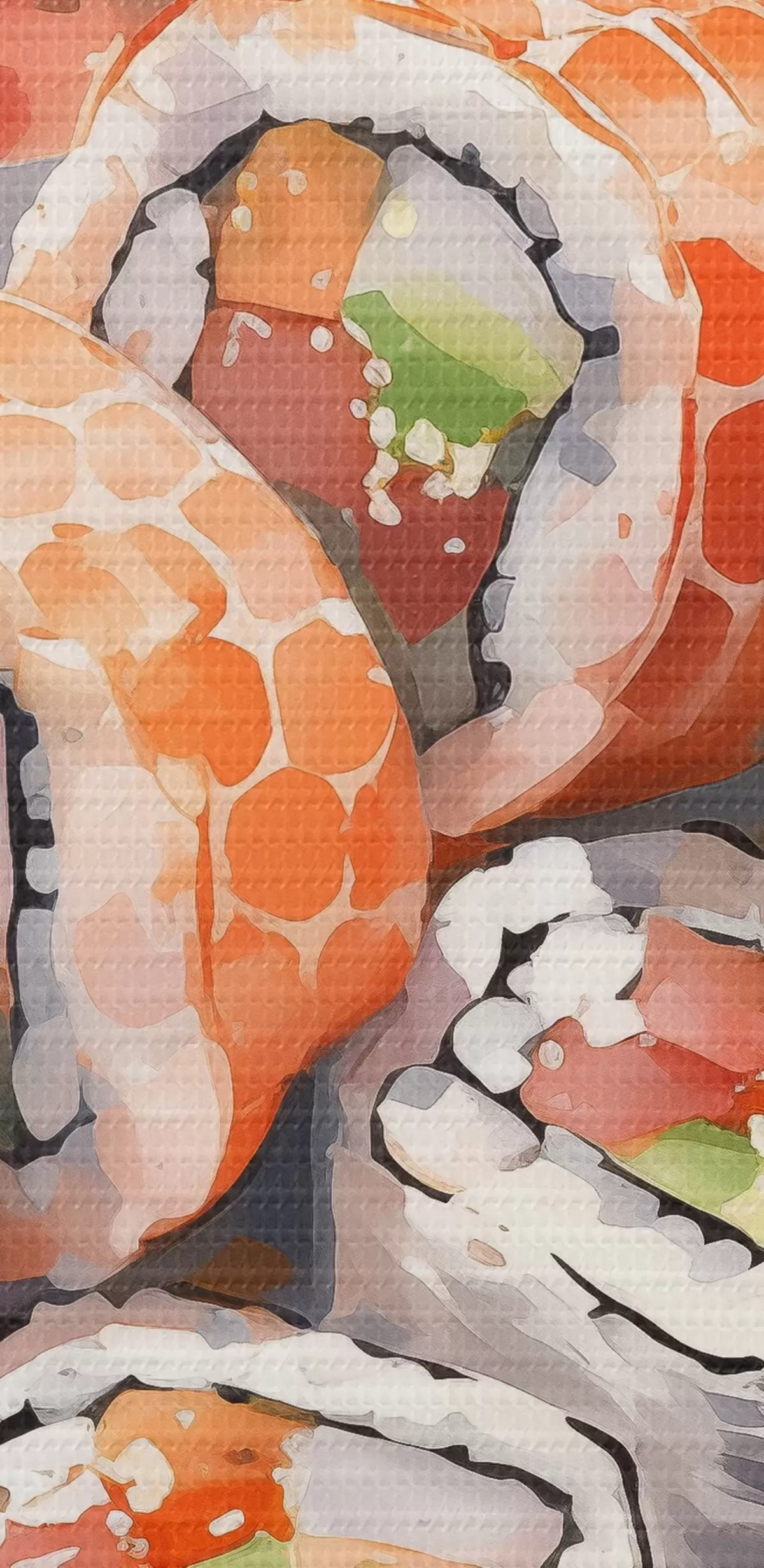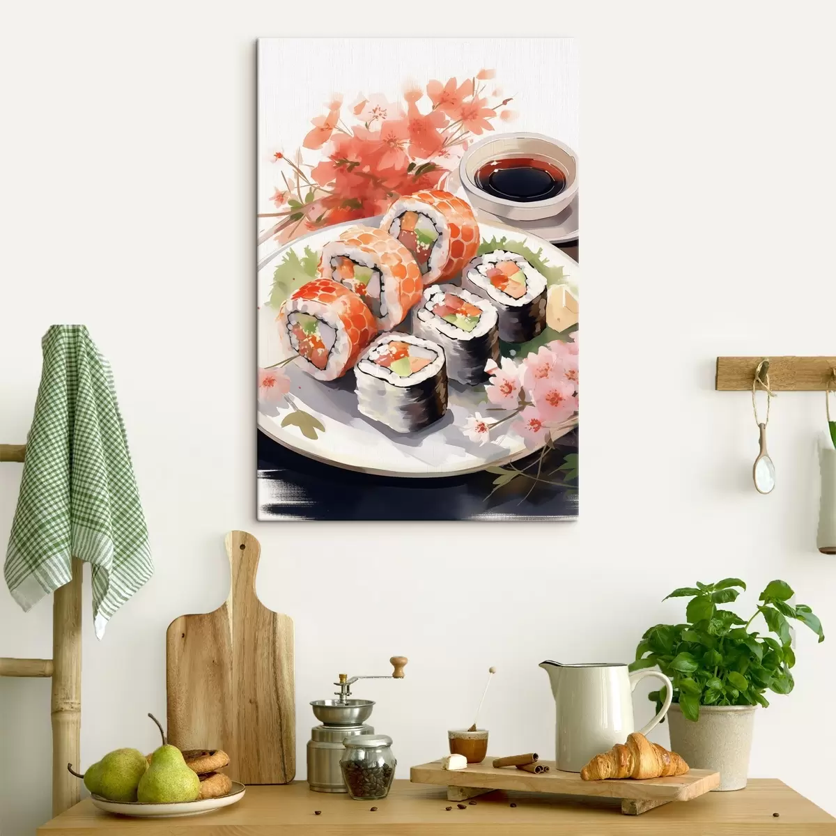Tableau Sushi dans l'assiette, aquarelle, floral, japonais s41179