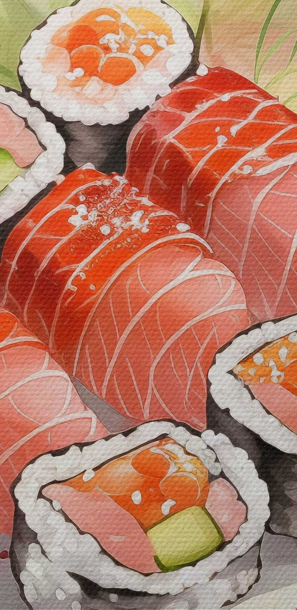 Tableau Aquarelle sushi, floral, japonais Nr s41181