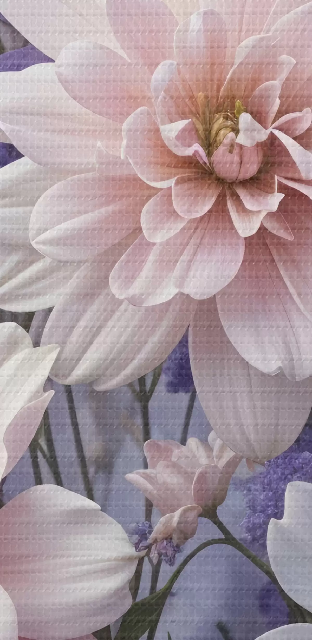 Tableau Un bouquet de grandes fleurs de dahlia vibrantes dans des tons de rose, de lavande et de blanc sur un arrière-plan doux et flou s41247