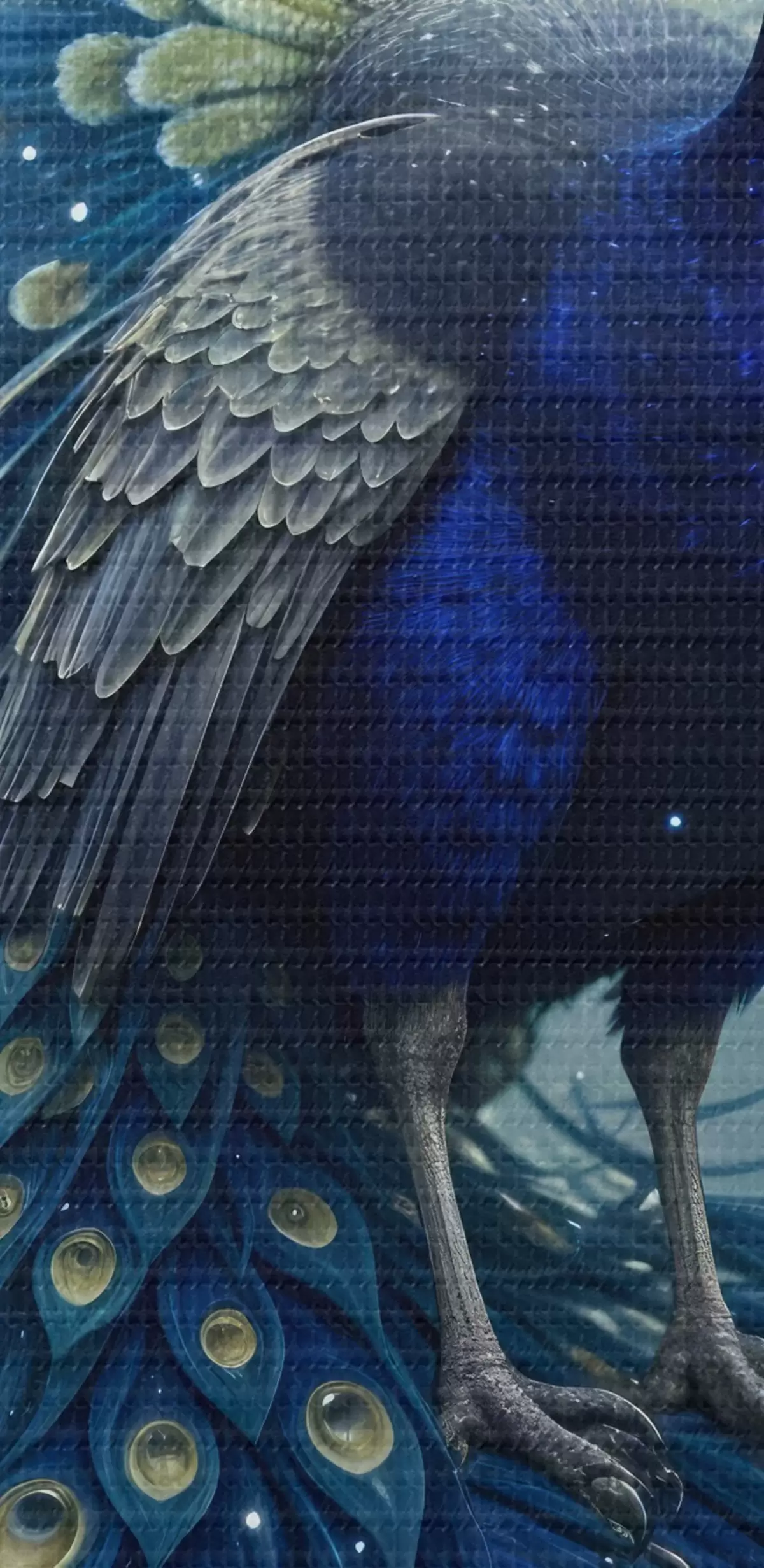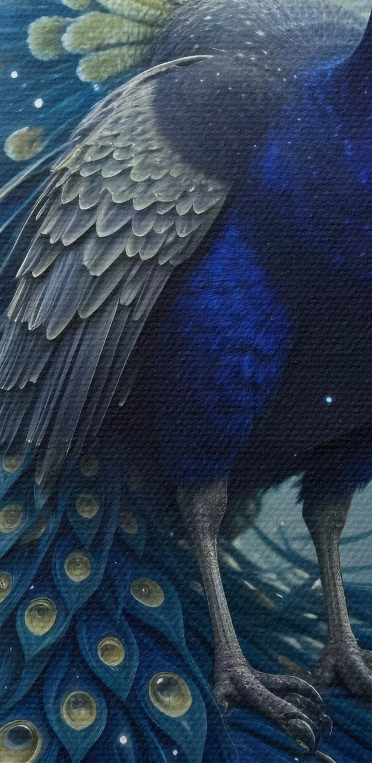 Tableau Un paon vibrant et majestueux sur fond de ciel étoilé, créant une atmosphère magique et éthérée Nr s41256