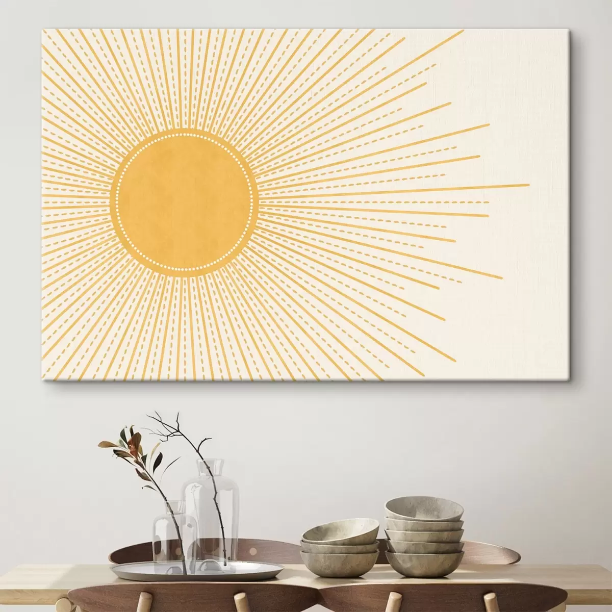 Tableau Un soleil jaune vif avec des rayons de soleil rayonnants sur un fond clair, créant une atmosphère chaude et ensoleillée Nr s41268
