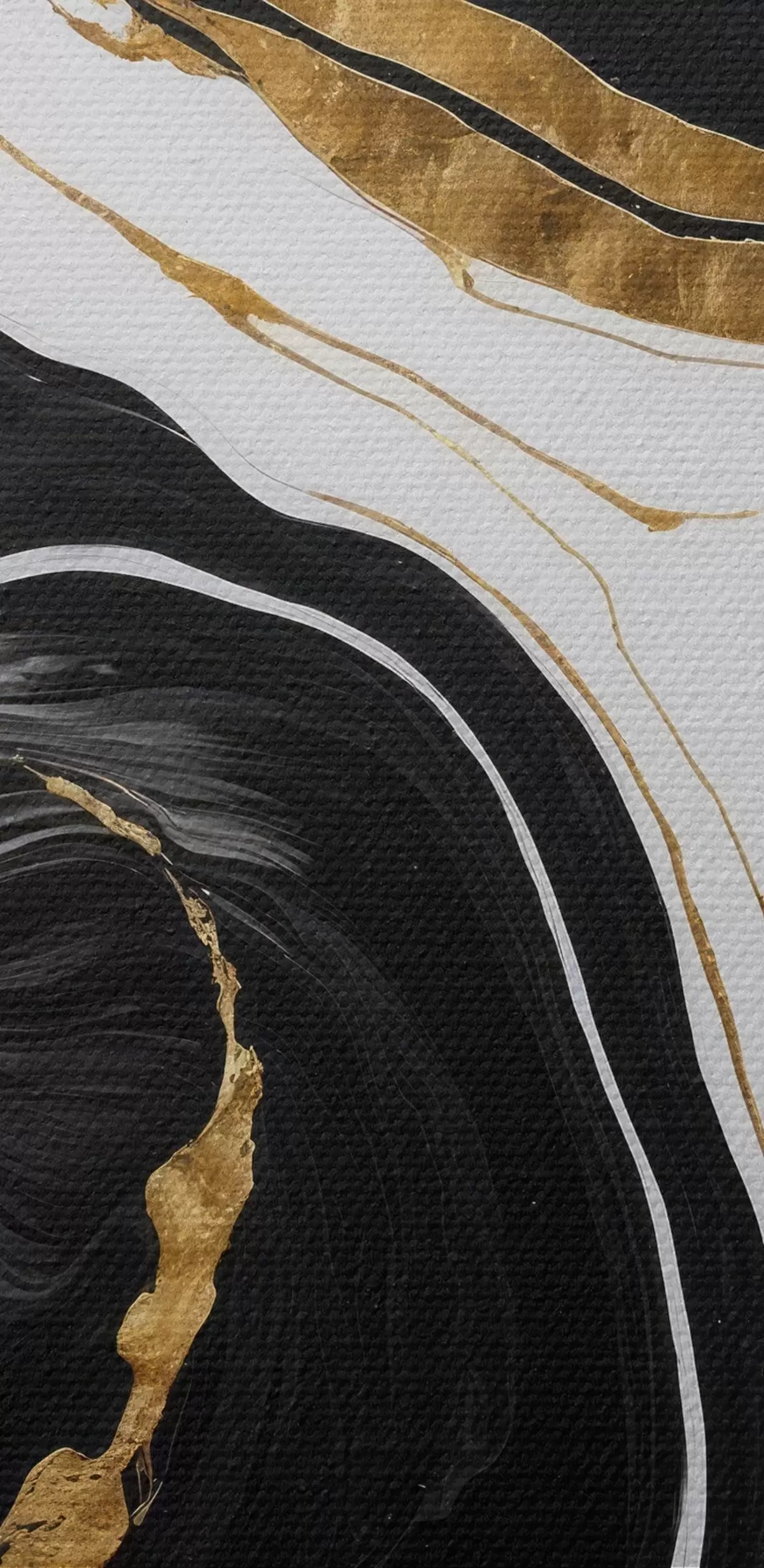 Tableau Peinture abstraite en noir et blanc avec des taches jaunes s41292