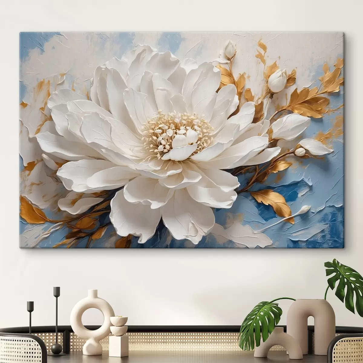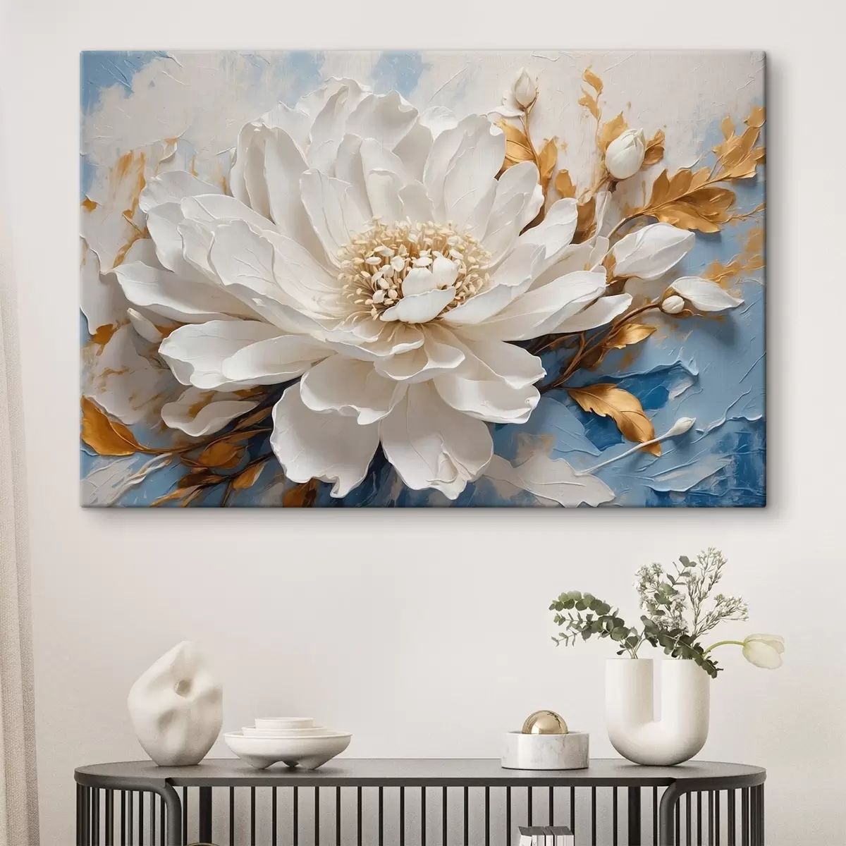 Tableau Fleur blanche sur fond bleu-blanc s41311