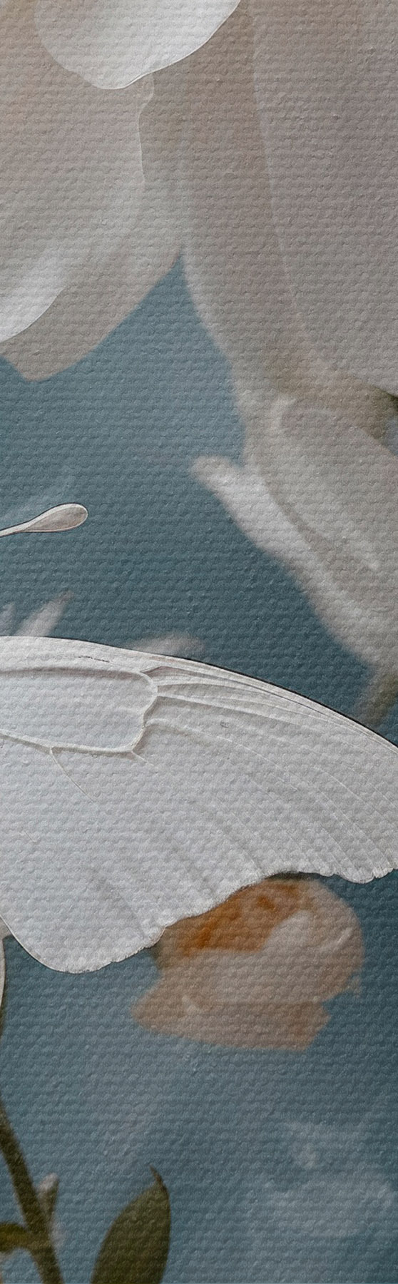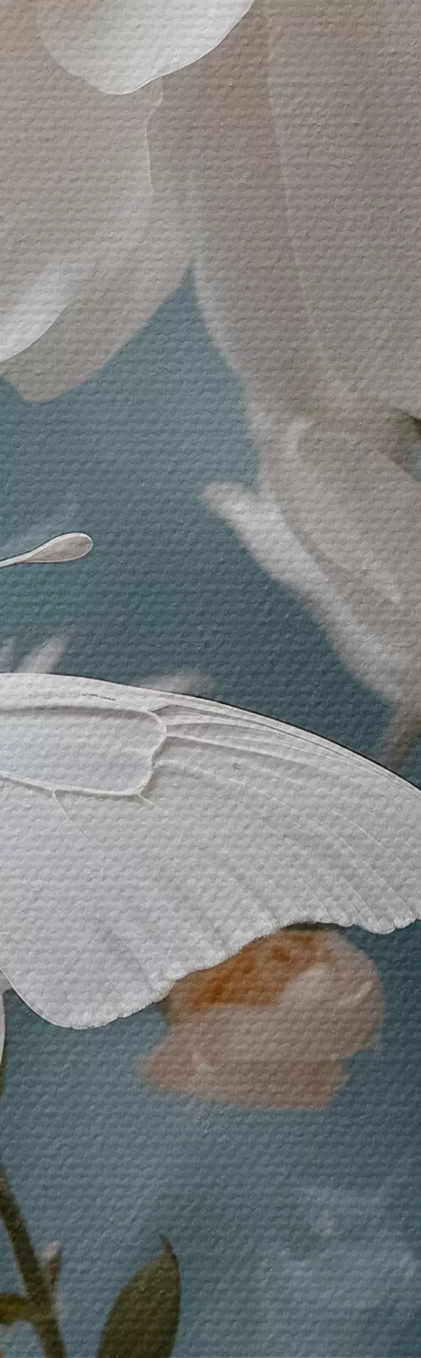 Tableau Fleurs blanches et papillon sur fond flou Nr s41312