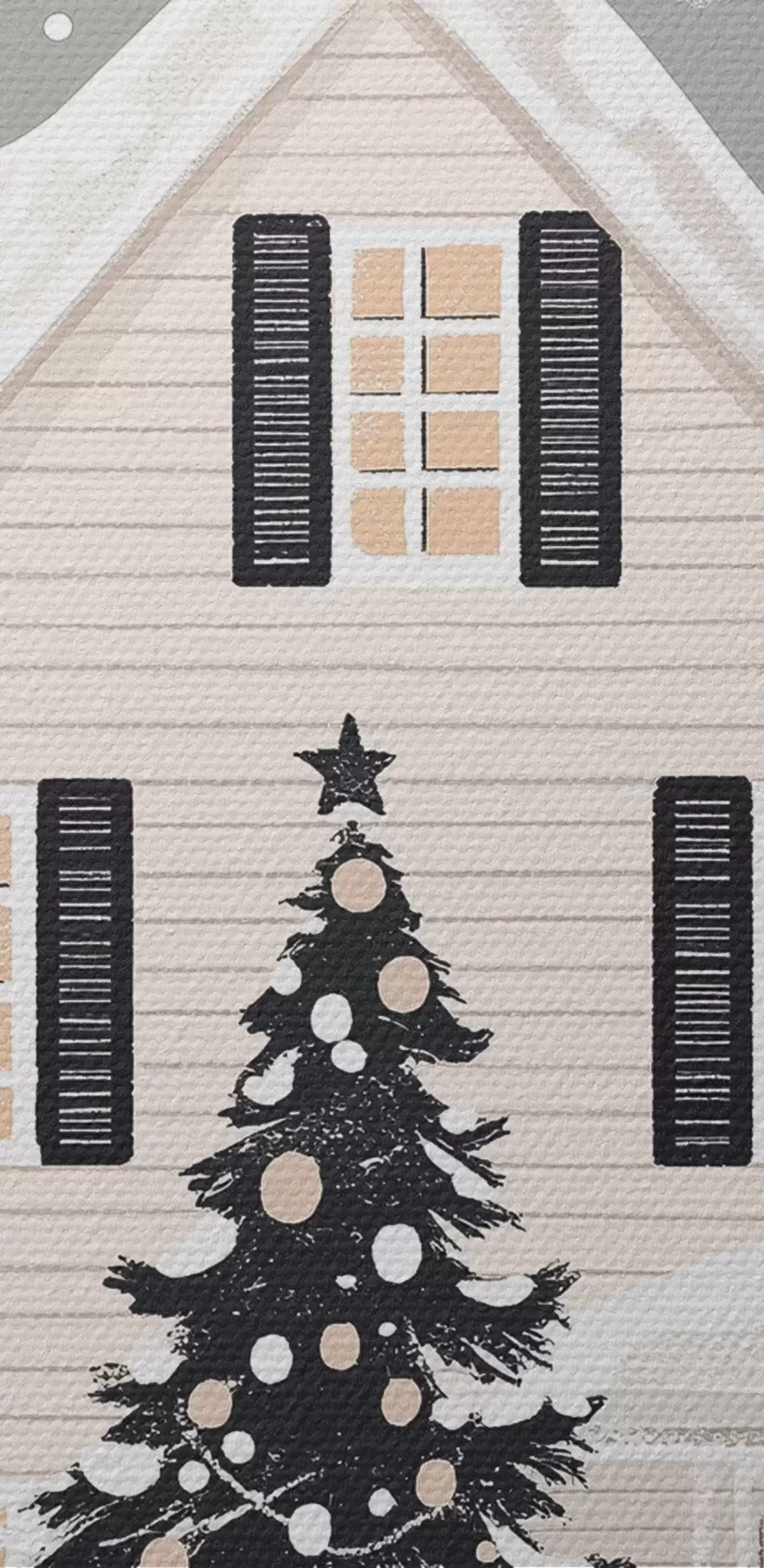 Tableau Ville d'hiver, sapin décoré, Noël, forêt, belle maison s41371