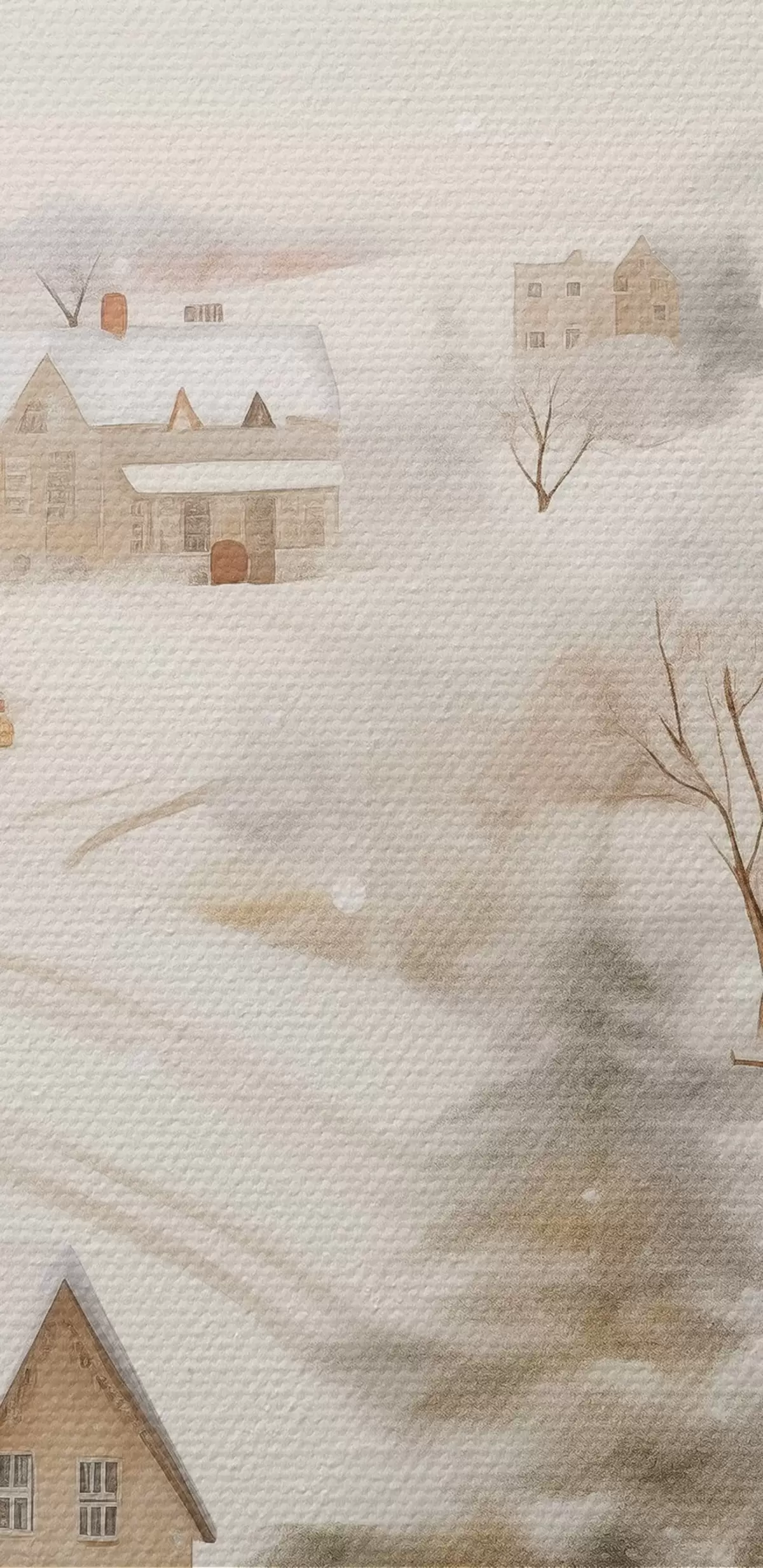 Tableau Village d'hiver, aquarelle, flocons de neige, couleurs douces, arbres, paysage Nr s41381