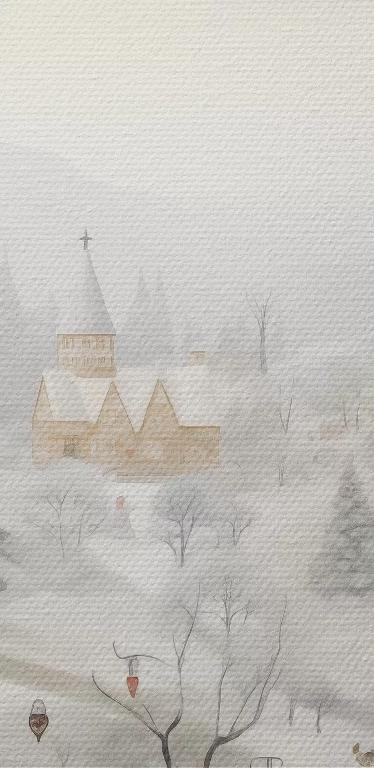 Tableau Magnifique paysage hivernal avec village, pins, maisons, montagnes Nr s41384