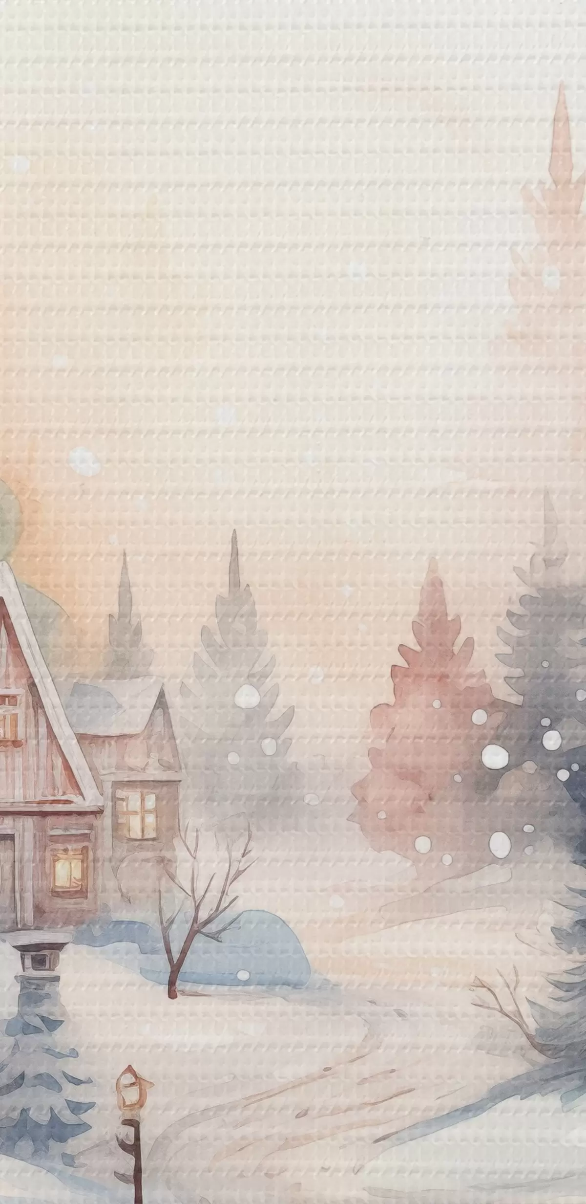 Tableau Paysage d'hiver, forêt de pins, belles maisons, aquarelle, susnet s41390