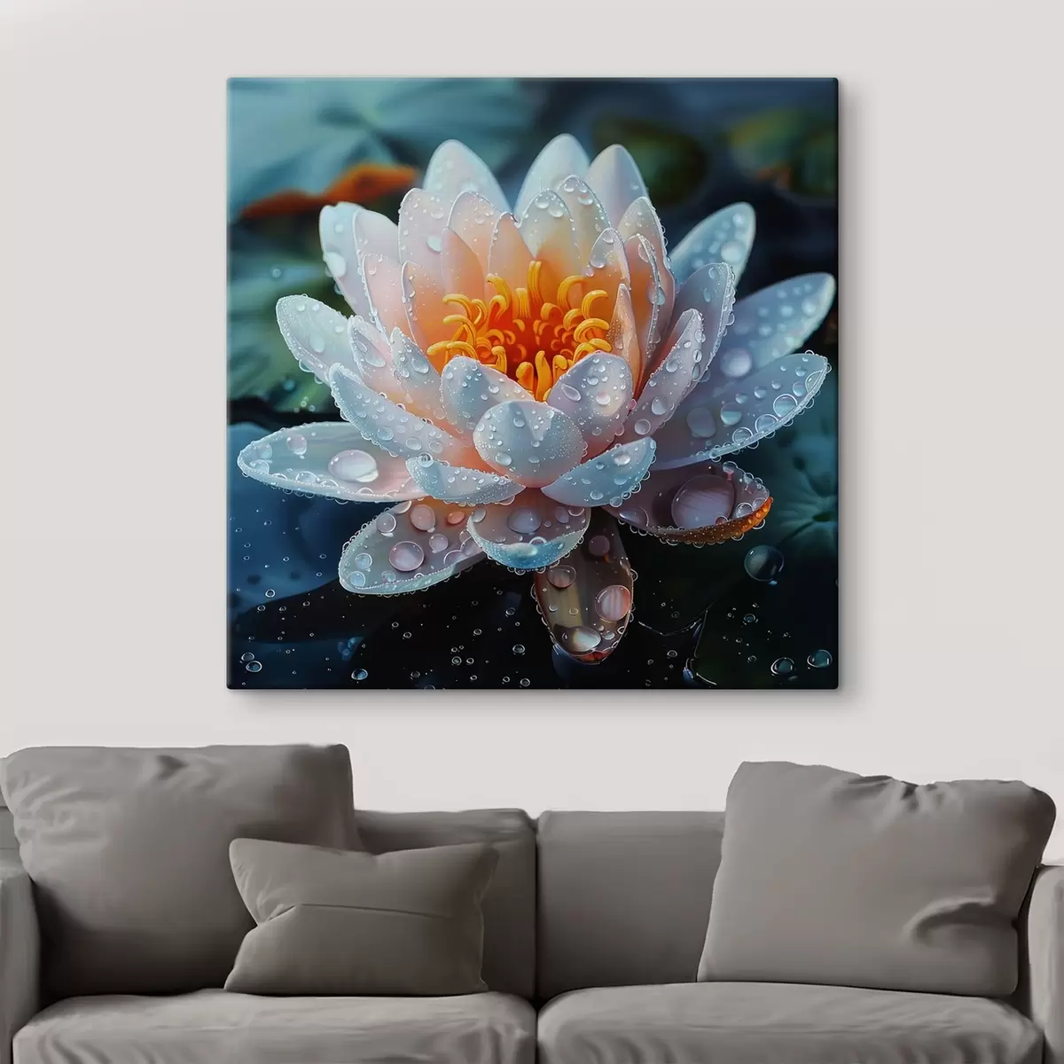 Tableau Fleur de lotus avec gouttes de rosée s41433