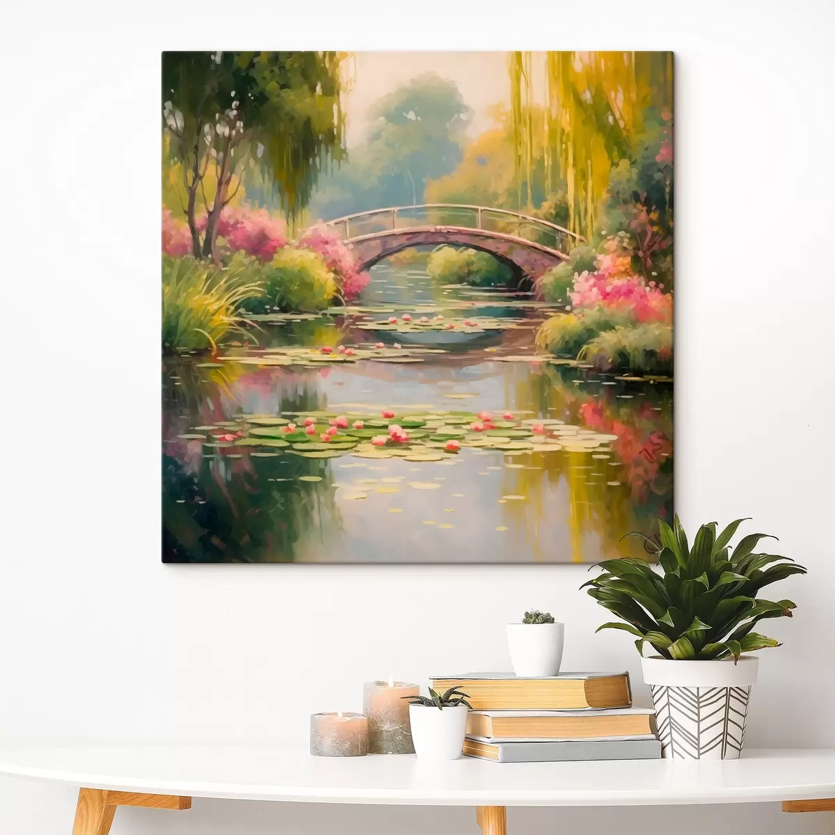 Tableau Pont de jardin au-dessus du lac avec des nénuphars s41503