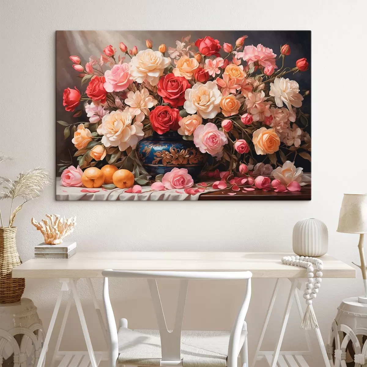 Trois types de matériaux peuvent être commandés : Economic Canvas - matériau dense et durable pour l'impression numérique, identique à la toile de peintre, surface imperméable, reproduction réaliste des détails, matériau à grain moyen. Premium Canvas - la texture ressemble à celle d'une toile de peintre (petits fils entrelacés). Reproduction douce et détaillée de l'image sur une surface mate. Eco-Premium - tissu 100 % coton de haute qualité. Grâce aux fibres naturelles de coton, le matériau est durable et résistant à l'usure. Excellente reproduction des couleurs et des détails.