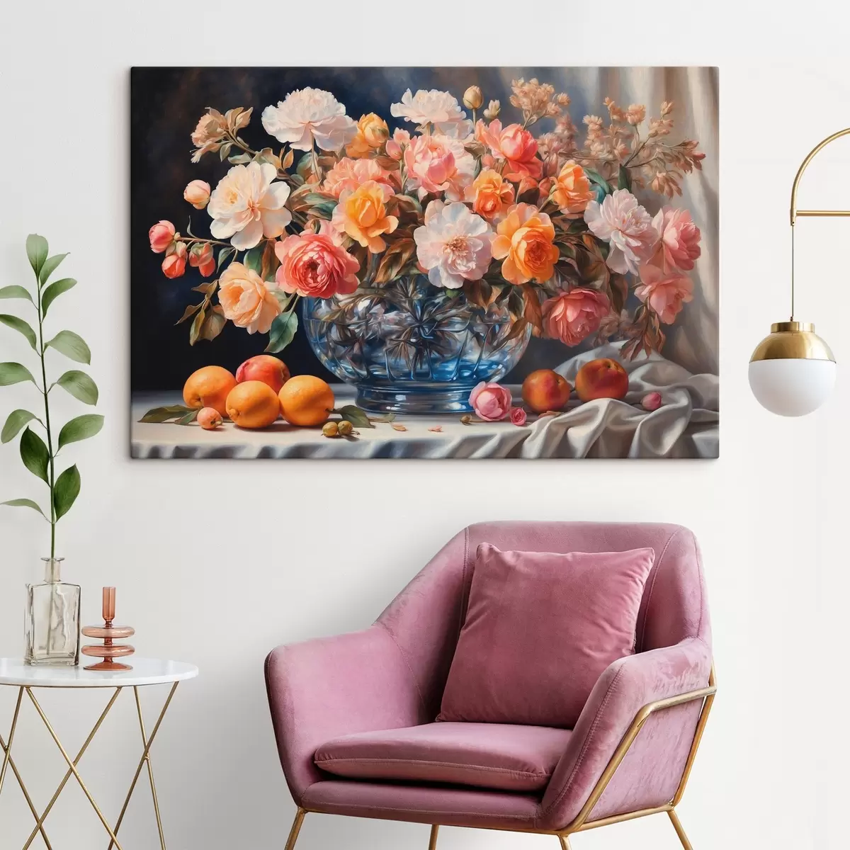 Trois types de matériaux peuvent être commandés : Economic Canvas - matériau dense et durable pour l'impression numérique, identique à la toile de peintre, surface imperméable, reproduction réaliste des détails, matériau à grain moyen. Premium Canvas - la texture ressemble à celle d'une toile de peintre (petits fils entrelacés). Reproduction douce et détaillée de l'image sur une surface mate. Eco-Premium - tissu 100 % coton de haute qualité. Grâce aux fibres naturelles de coton, le matériau est durable et résistant à l'usure. Excellente reproduction des couleurs et des détails.