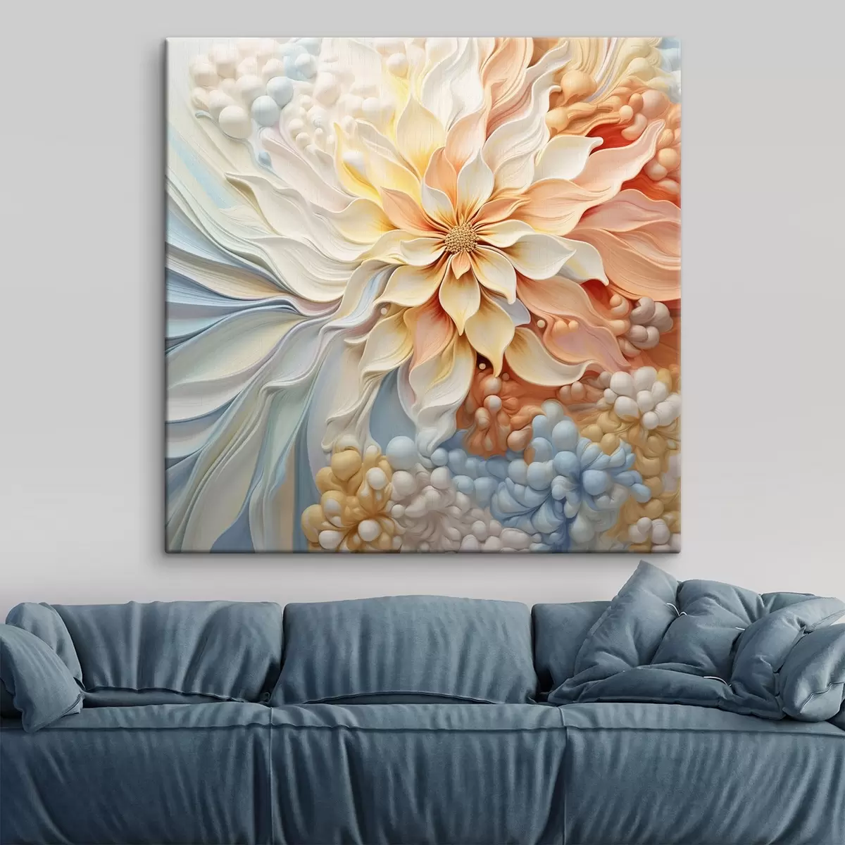 Trois types de matériaux peuvent être commandés : Economic Canvas - matériau dense et durable pour l'impression numérique, identique à la toile de peintre, surface imperméable, reproduction réaliste des détails, matériau à grain moyen. Premium Canvas - la texture ressemble à celle d'une toile de peintre (petits fils entrelacés). Reproduction douce et détaillée de l'image sur une surface mate. Eco-Premium - tissu 100 % coton de haute qualité. Grâce aux fibres naturelles de coton, le matériau est durable et résistant à l'usure. Excellente reproduction des couleurs et des détails.