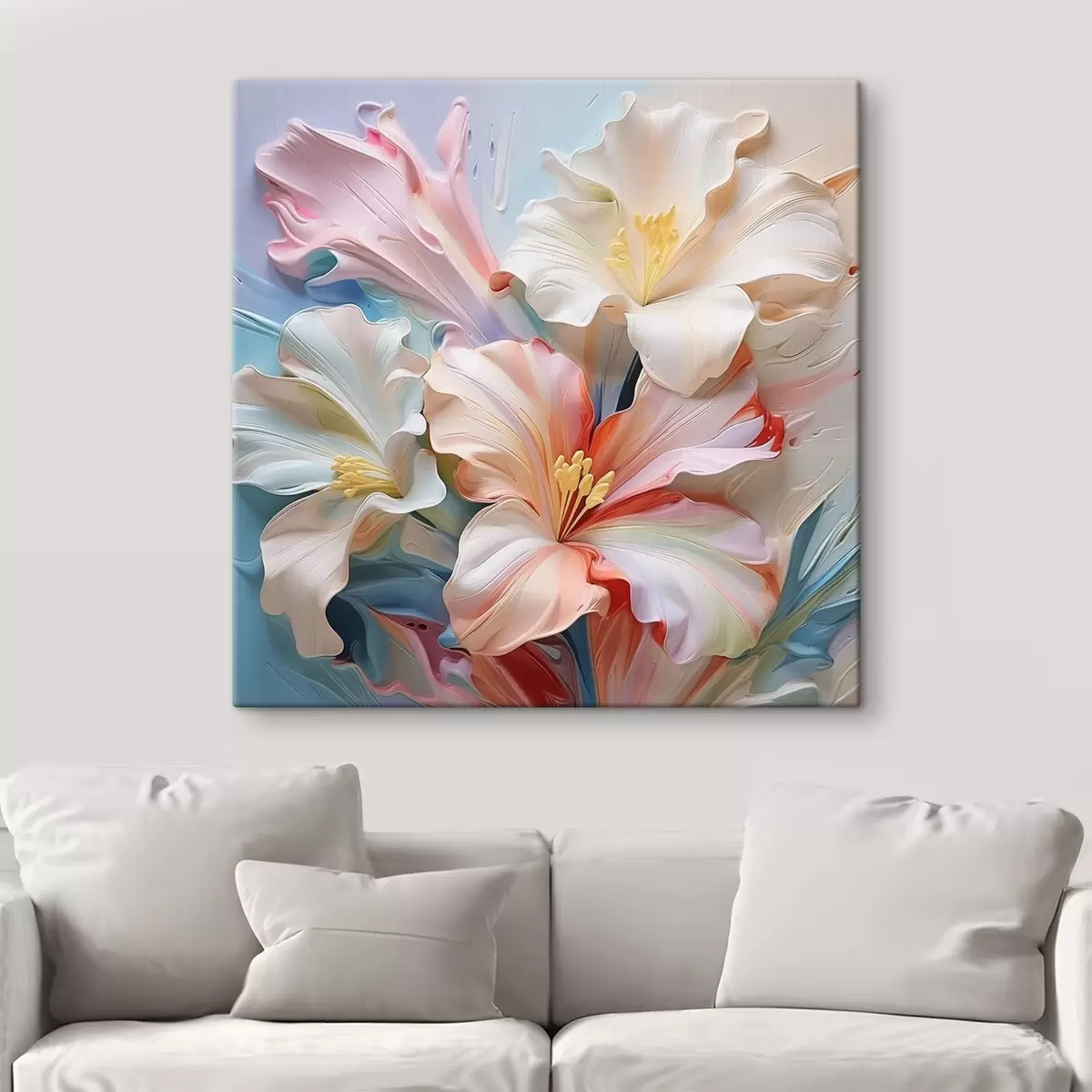 Trois types de matériaux peuvent être commandés : Economic Canvas - matériau dense et durable pour l'impression numérique, identique à la toile de peintre, surface imperméable, reproduction réaliste des détails, matériau à grain moyen. Premium Canvas - la texture ressemble à celle d'une toile de peintre (petits fils entrelacés). Reproduction douce et détaillée de l'image sur une surface mate. Eco-Premium - tissu 100 % coton de haute qualité. Grâce aux fibres naturelles de coton, le matériau est durable et résistant à l'usure. Excellente reproduction des couleurs et des détails.