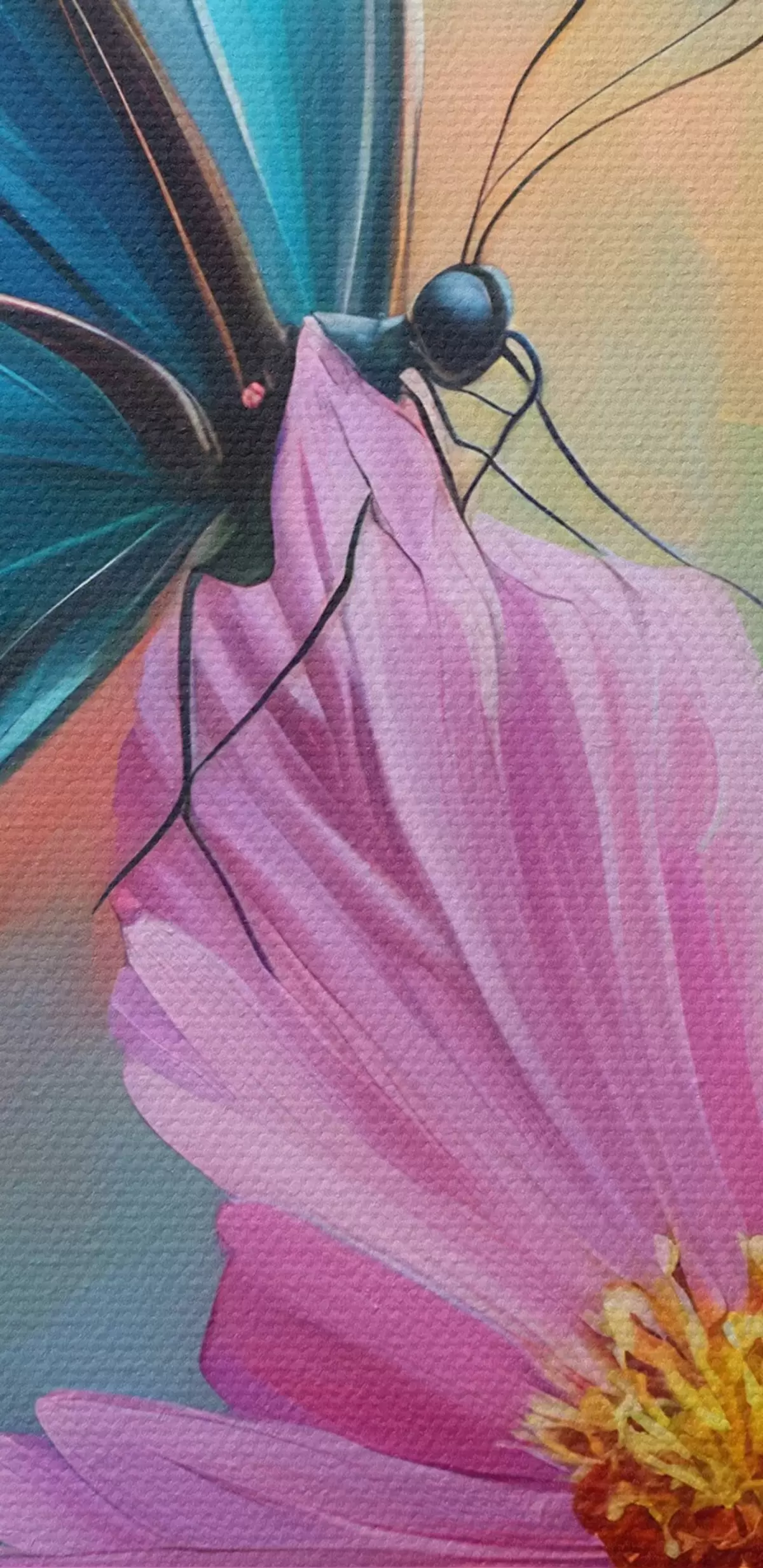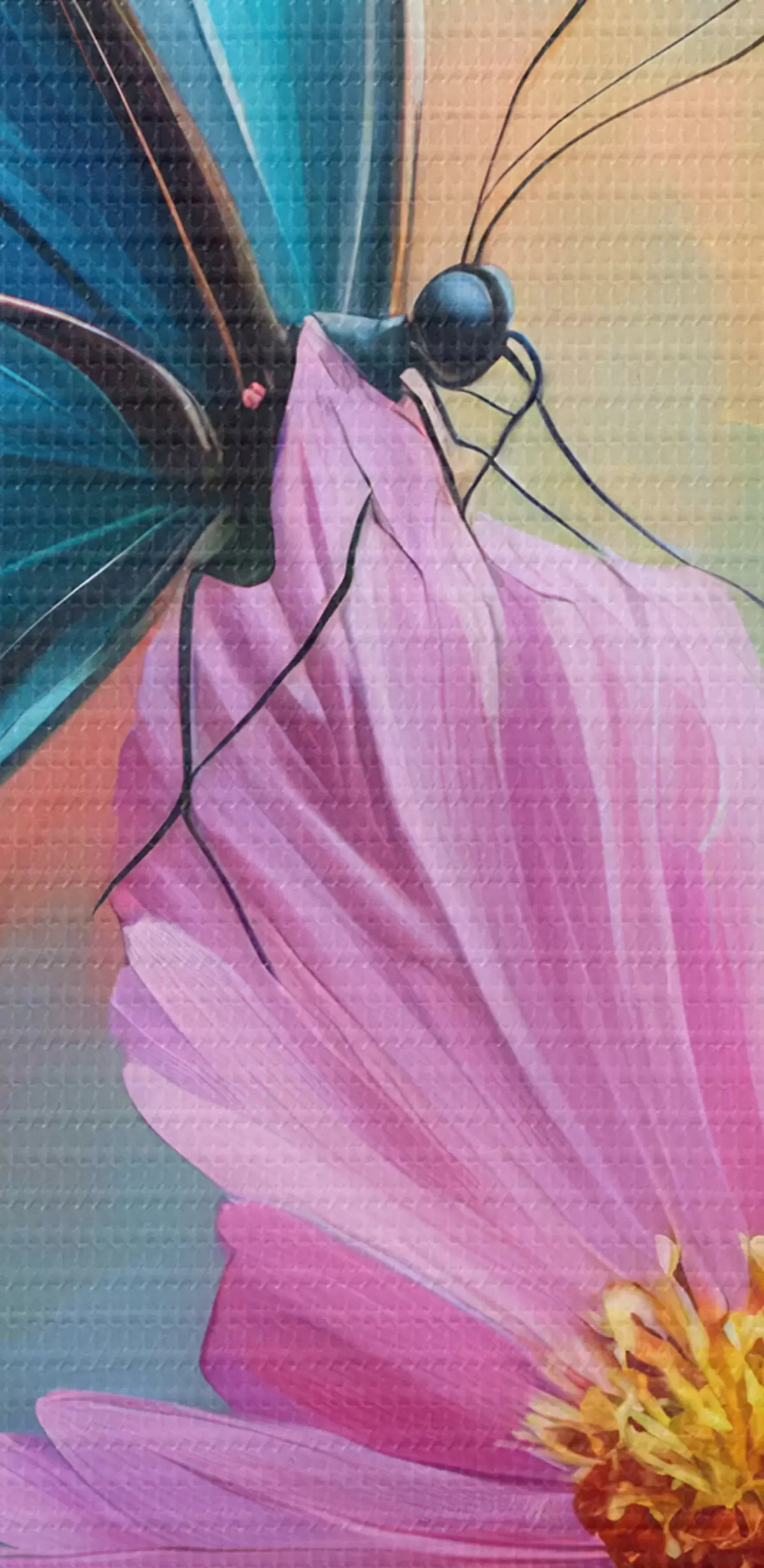 Tableau papillon et grande fleur rose Nr s41620