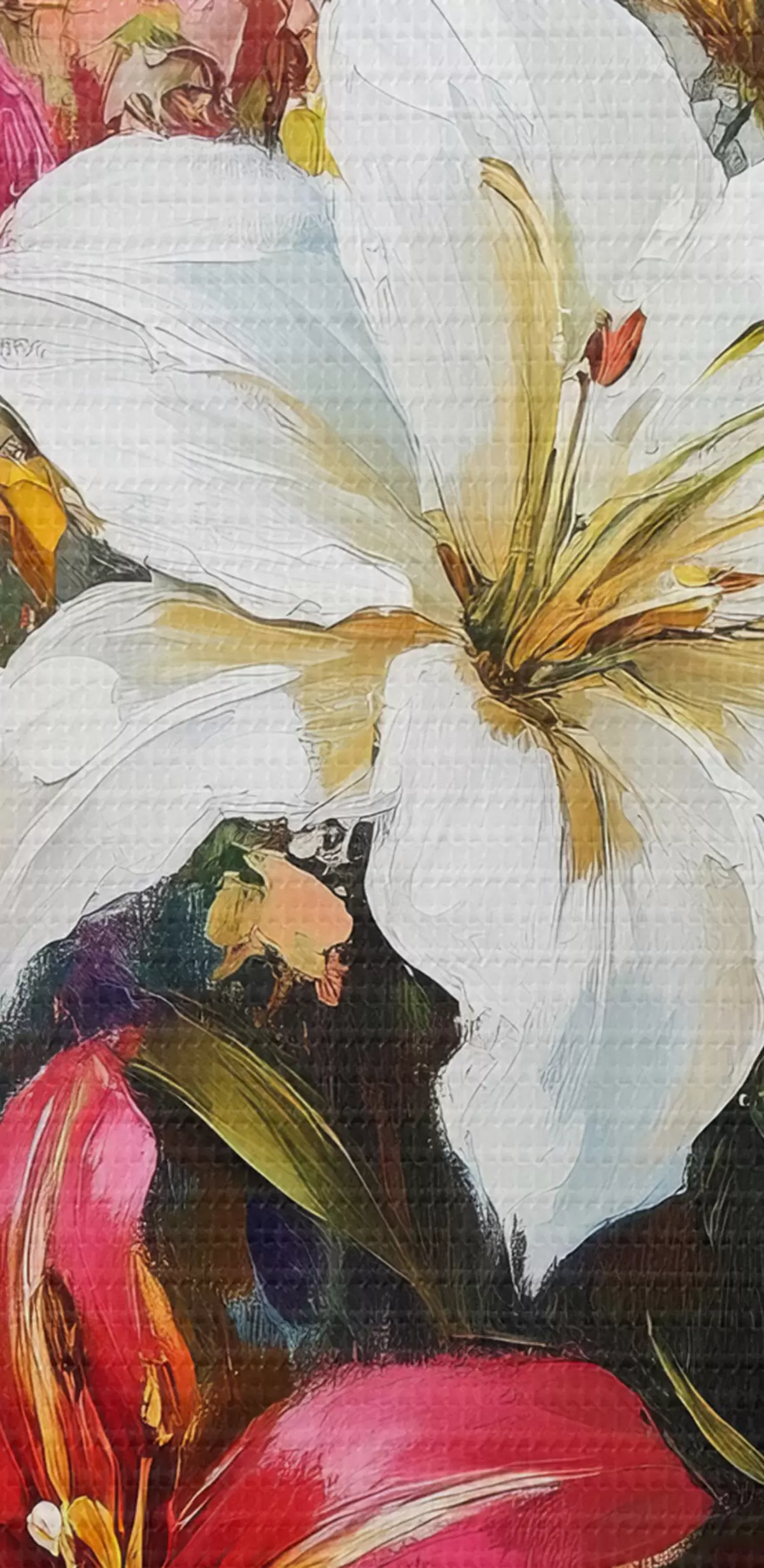 Trois types de matériaux peuvent être commandés : Economic Canvas - matériau dense et durable pour l'impression numérique, identique à la toile de peintre, surface imperméable, reproduction réaliste des détails, matériau à grain moyen. Premium Canvas - la texture ressemble à celle d'une toile de peintre (petits fils entrelacés). Reproduction douce et détaillée de l'image sur une surface mate. Eco-Premium - tissu 100 % coton de haute qualité. Grâce aux fibres naturelles de coton, le matériau est durable et résistant à l'usure. Excellente reproduction des couleurs et des détails.