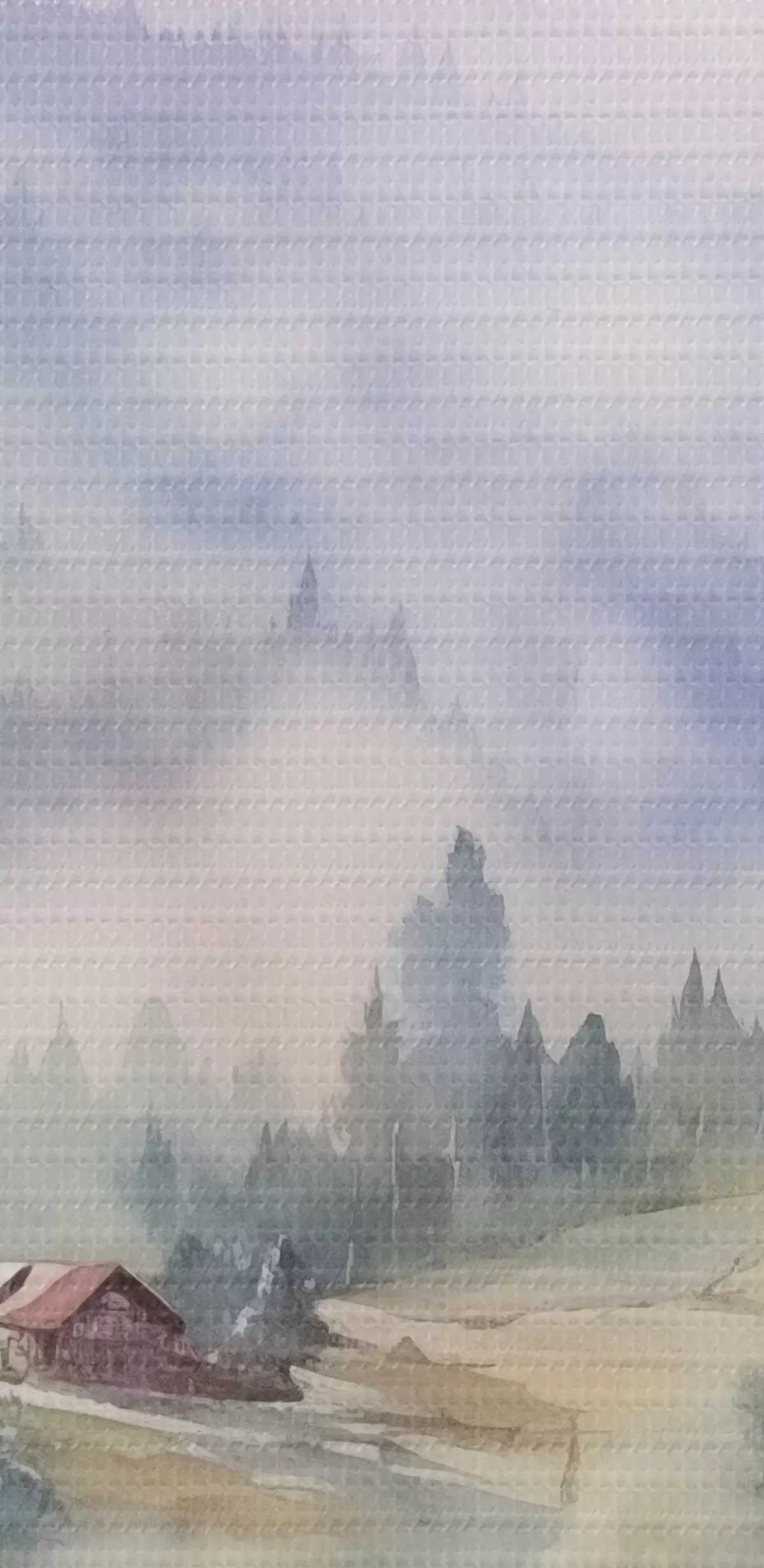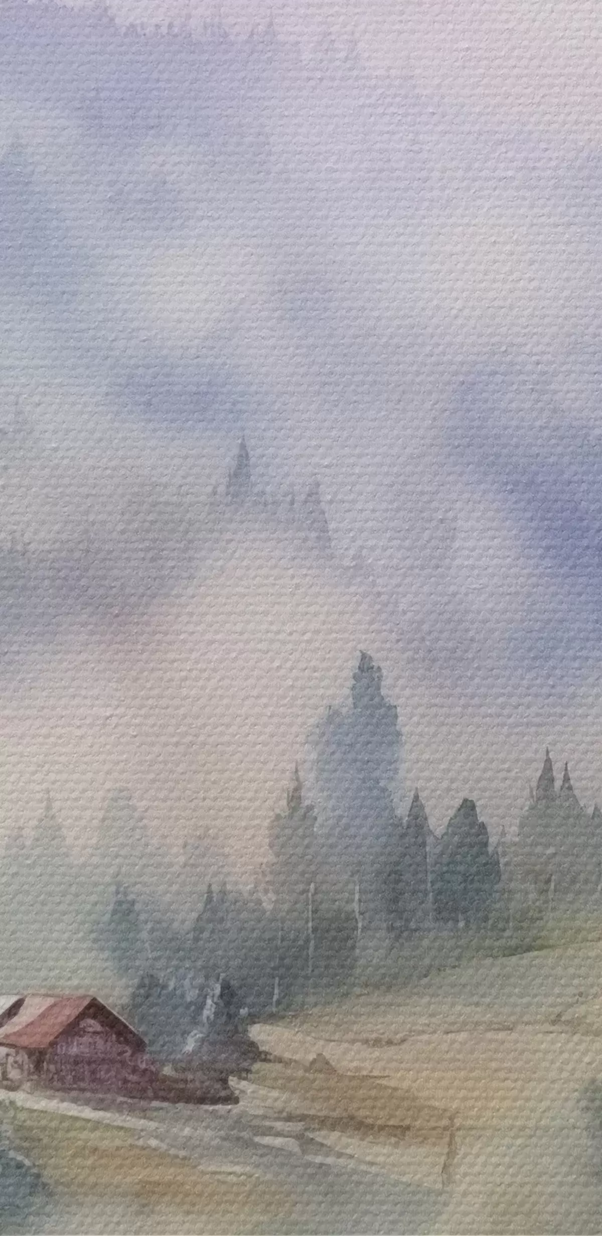 Tableau Belles montagnes, paysages forestiers brumeux, aquarelle, village Nr s41649