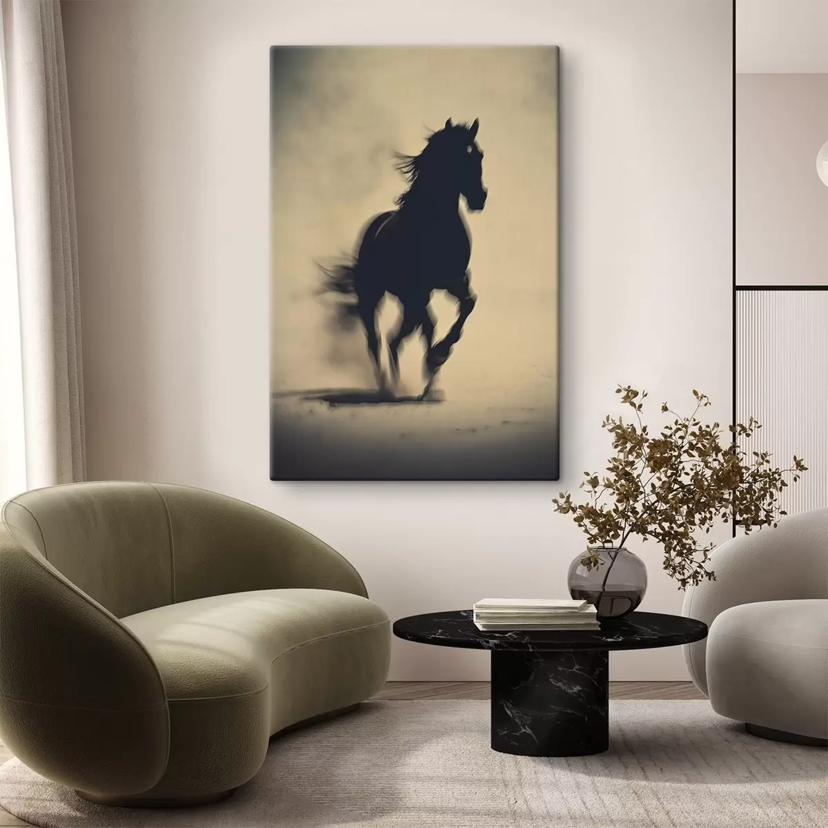 Tableau Silhouette d'un cheval noir en style flou Nr s41708