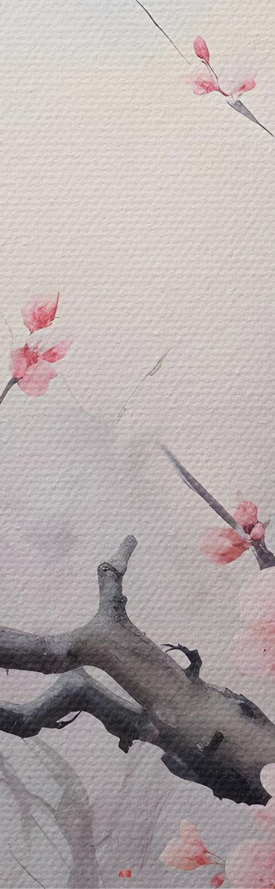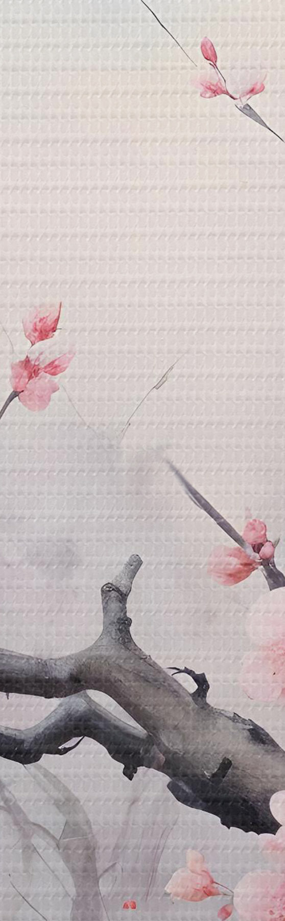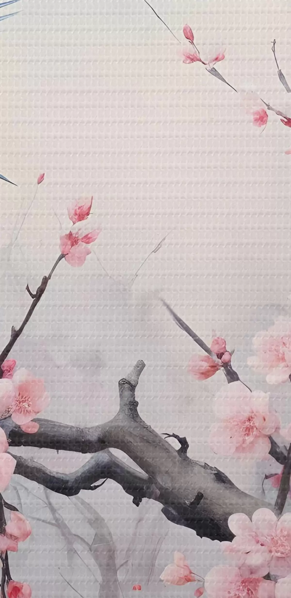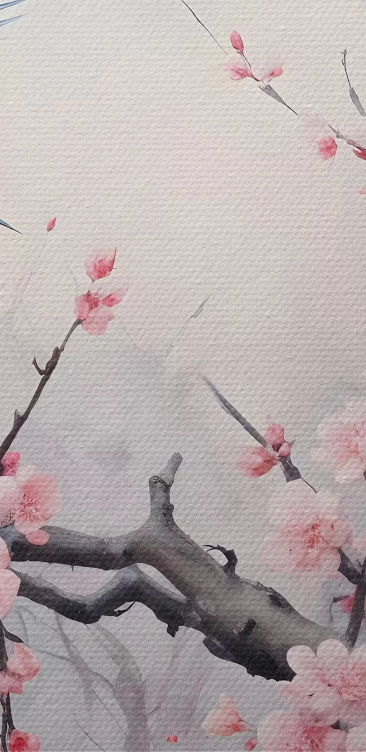 Tableau Oiseau bleu volant parmi des fleurs de cerisier roses sur un fond brumeux de printemps Nr s41712