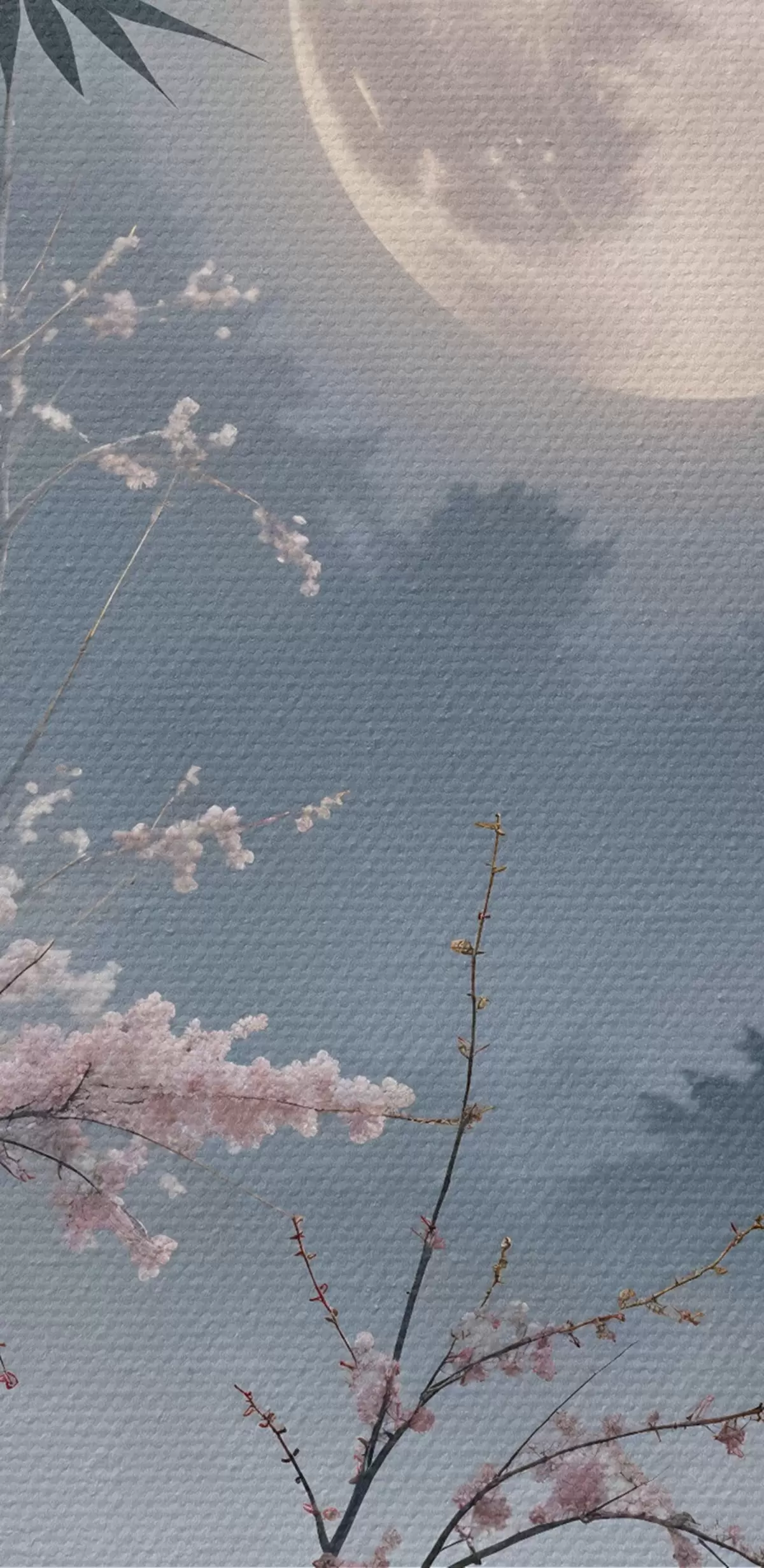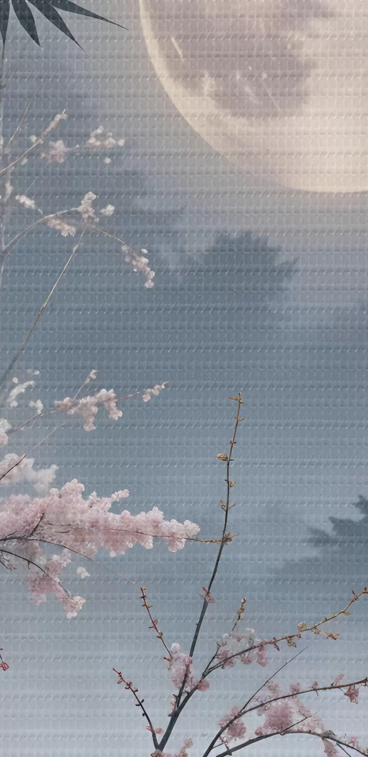 Tableau Une pleine lune dans un ciel nocturne, entourée de silhouettes de bambous et de branches de cerisiers en fleurs  s41717