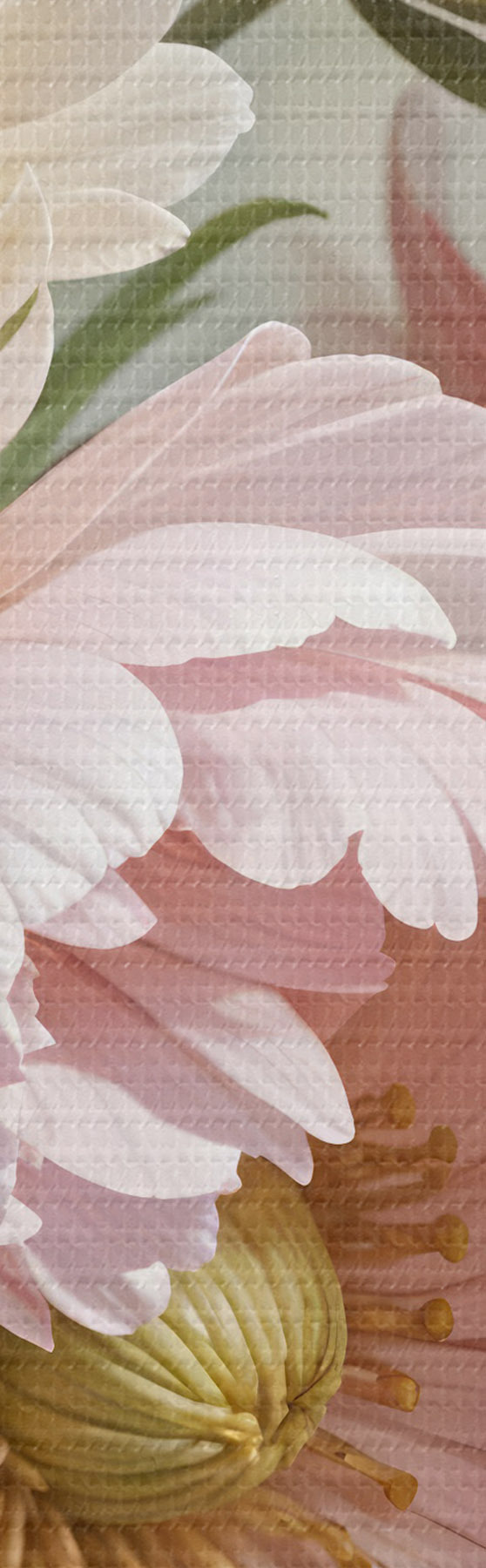 Tableau Plusieurs grandes fleurs de pivoine luxuriantes aux pétales délicats dans les tons de rose et de blanc Nr s41729