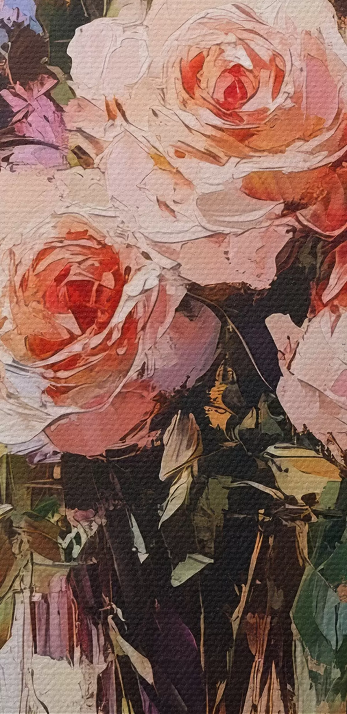 Trois types de matériaux peuvent être commandés : Economic Canvas - matériau dense et durable pour l'impression numérique, identique à la toile de peintre, surface imperméable, reproduction réaliste des détails, matériau à grain moyen. Premium Canvas - la texture ressemble à celle d'une toile de peintre (petits fils entrelacés). Reproduction douce et détaillée de l'image sur une surface mate. Eco-Premium - tissu 100 % coton de haute qualité. Grâce aux fibres naturelles de coton, le matériau est durable et résistant à l'usure. Excellente reproduction des couleurs et des détails.