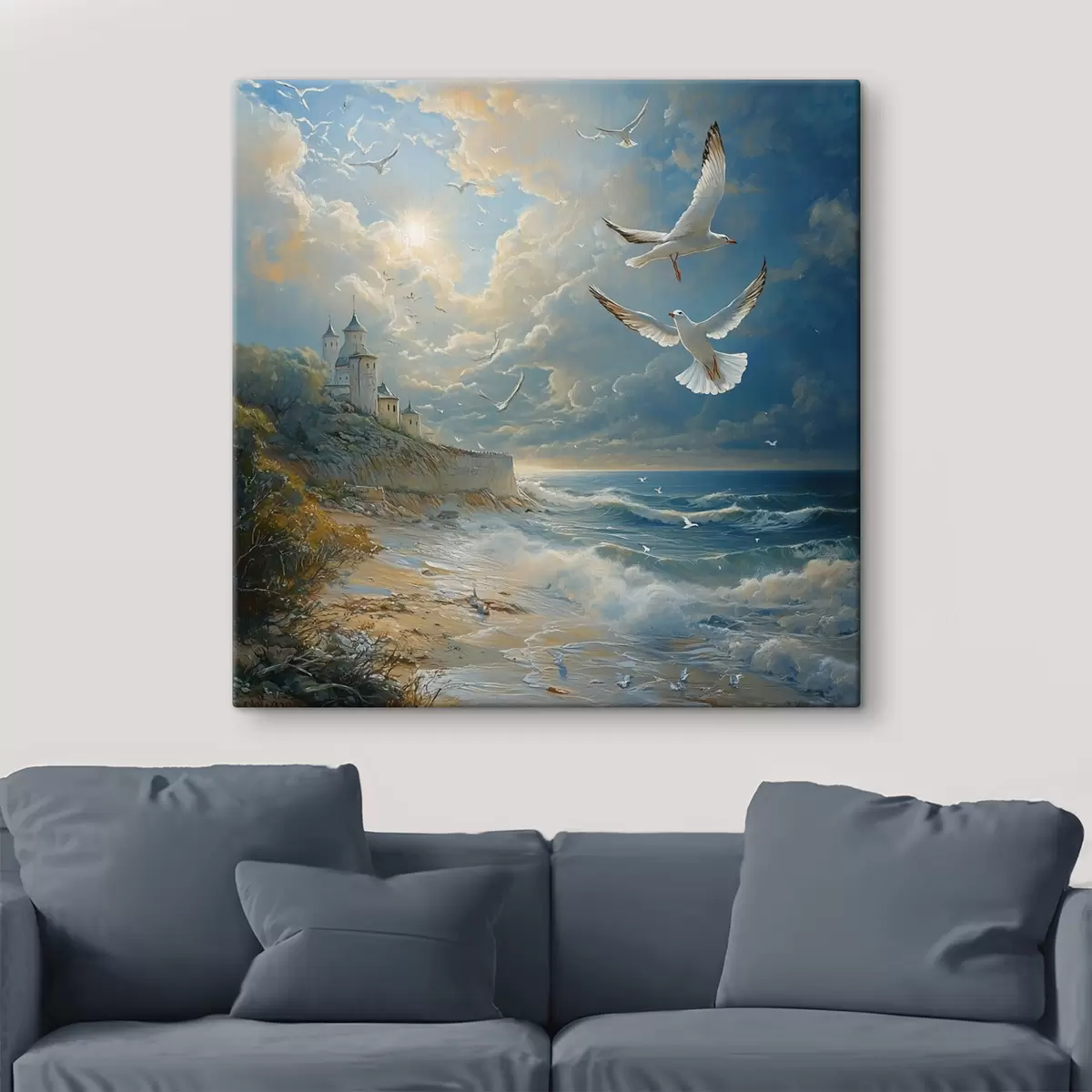 Tableau Bord de mer et oiseaux, dans le style de la peinture à l'huile s41756